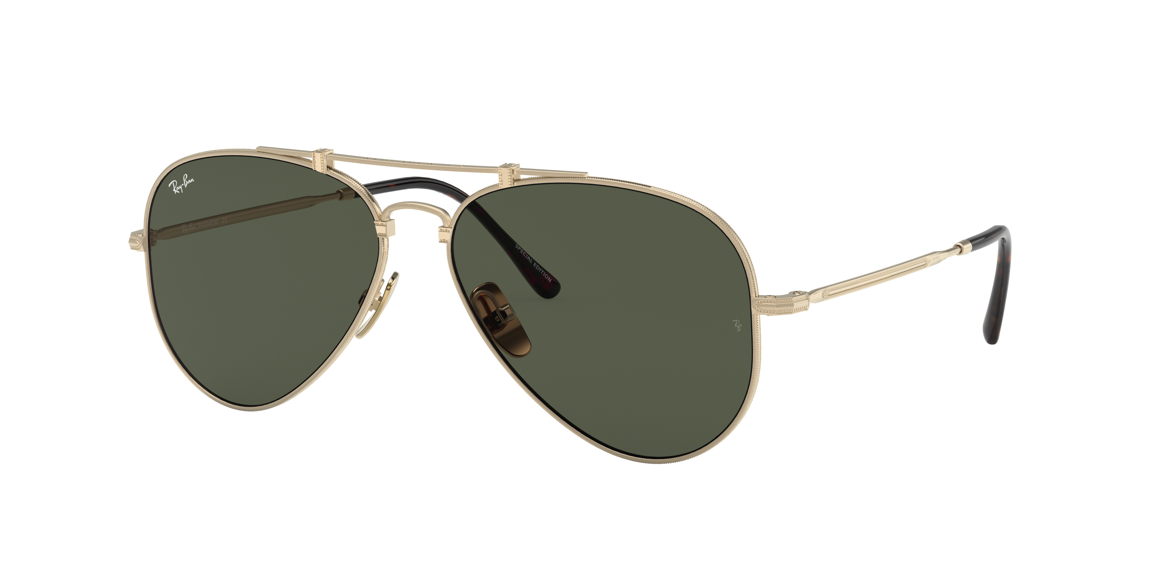Ray-Ban Caravan Titanium Gold Aviator Sunglasses Green Lens