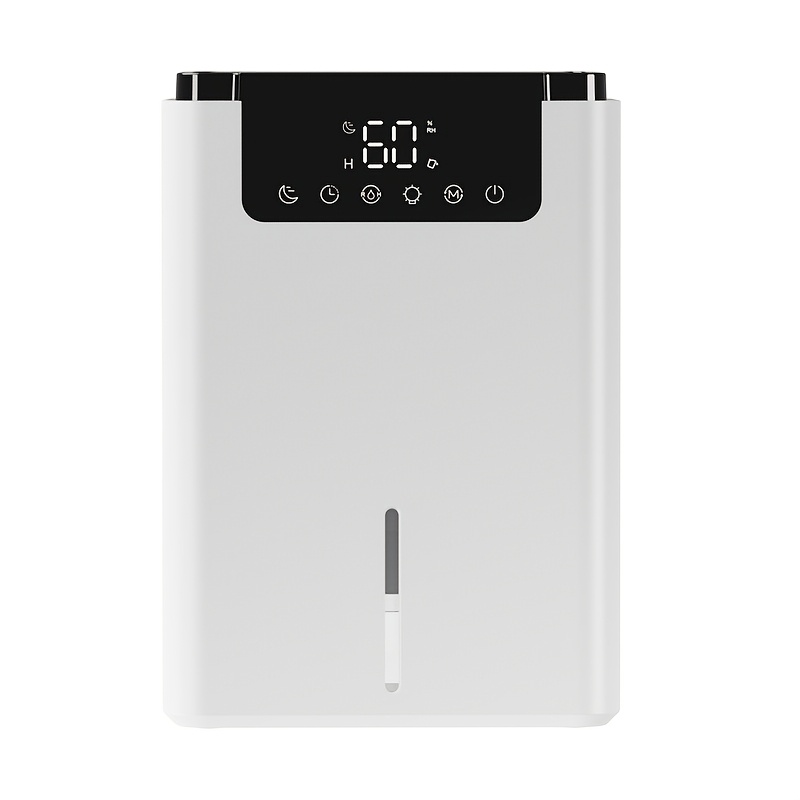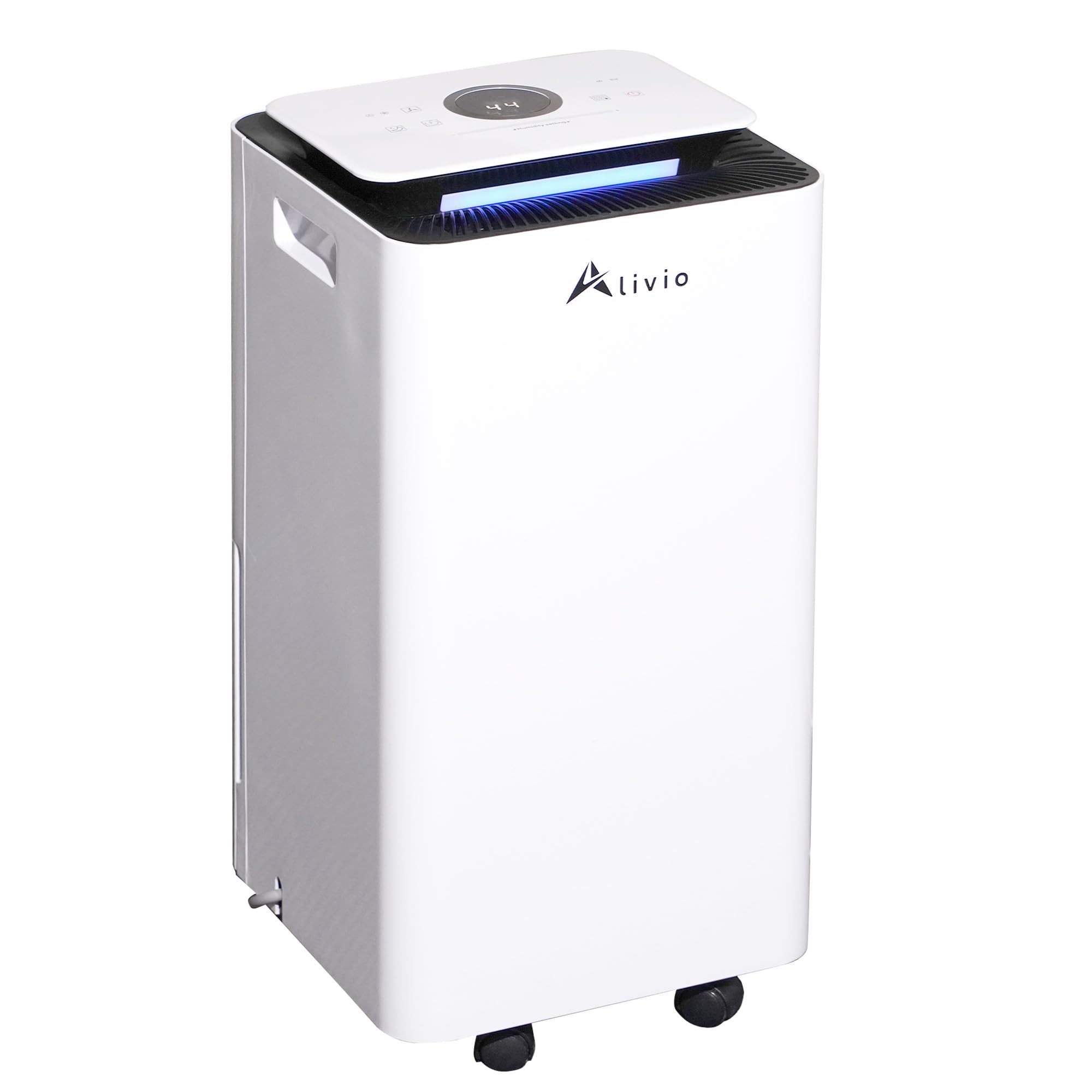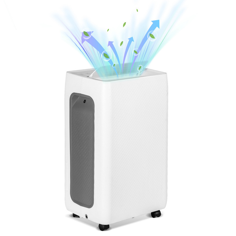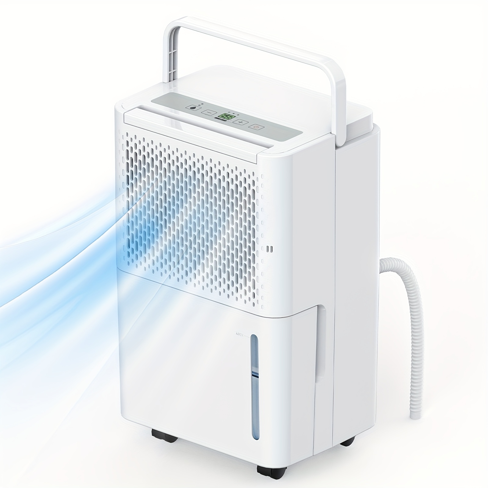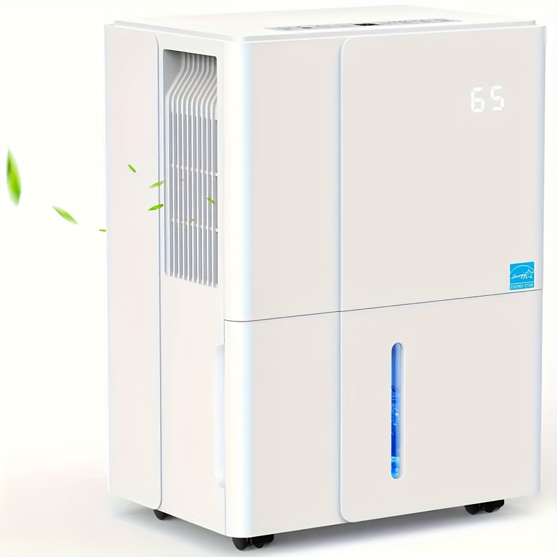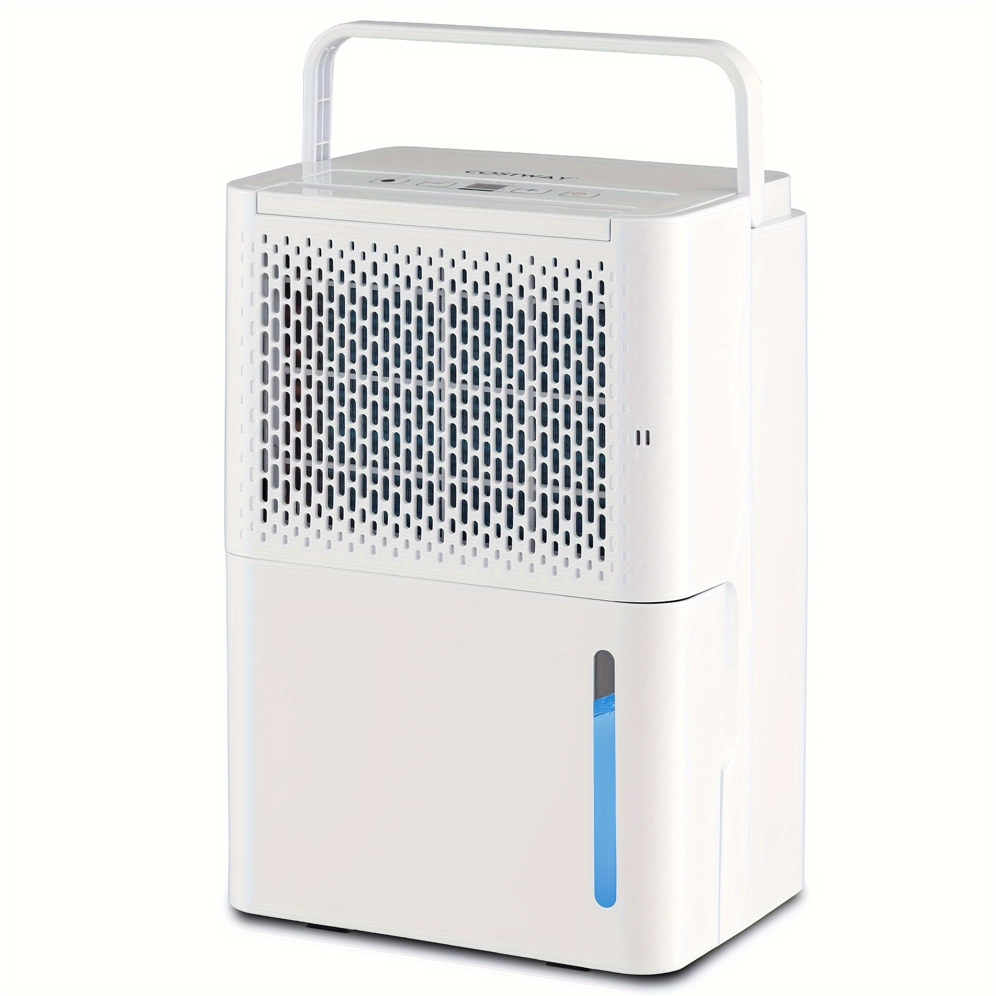 This compact dehumidifier from Santa Fe was designed to handle everything from large finished basements to cramped crawl space conditions and features a MERV-13 filter onboard humidistat automatic defrost and simple controls.