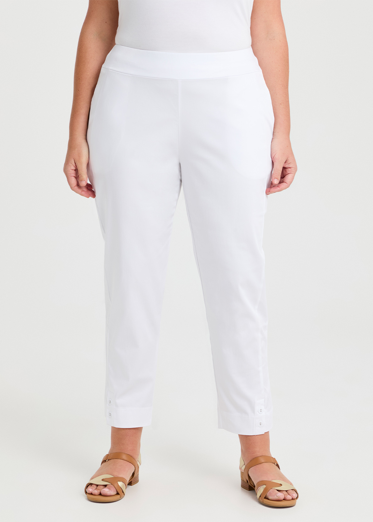 Go from desk to dinner with ease in the Tapered Work Pant from our TS collections. Crafted from a cotton blend, these pants offer a tapered fit, and are great for everyday wear or dressed up for the evening. These plus-size pants feature a flat elastic waistband, side pockets, and front splits with button detail.