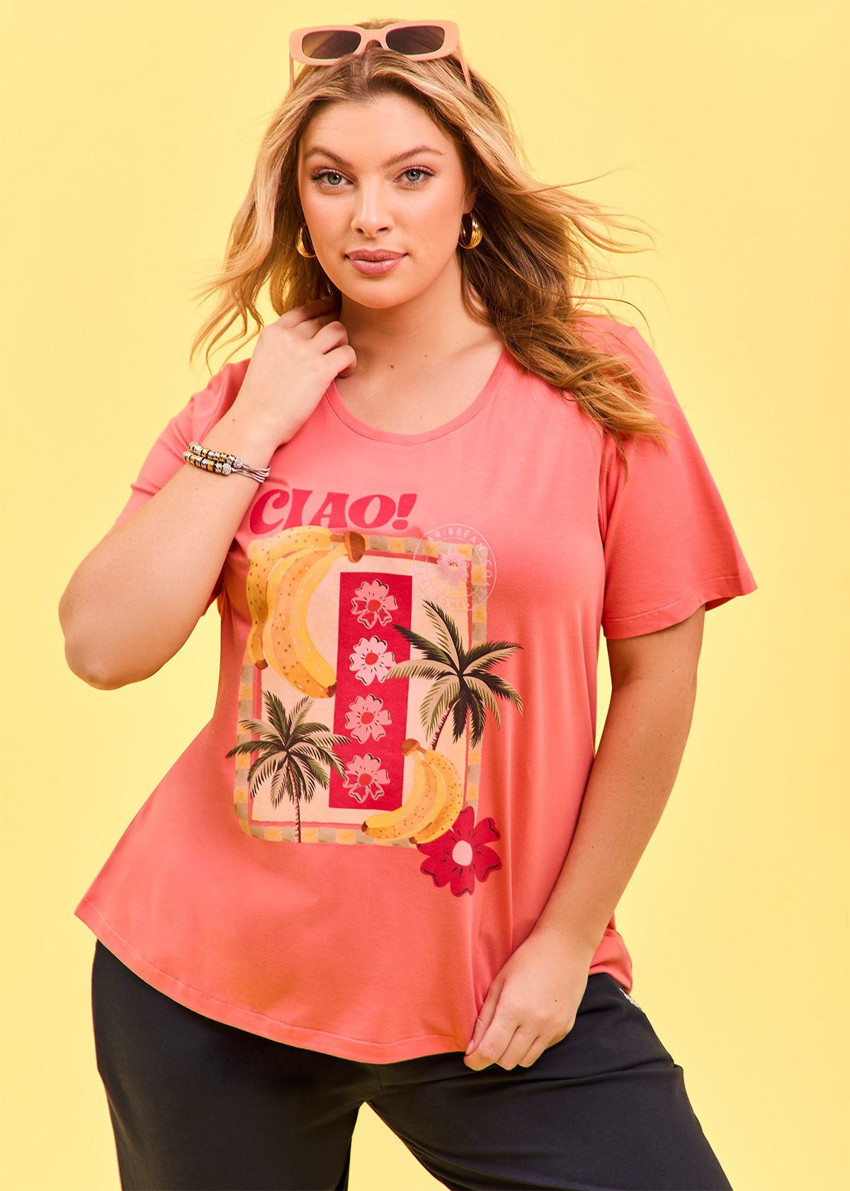 Elevate your style with the Cotton Ciao Print T-Shirt from Taking Shape, which is perfect for sunny days and vacations. Featuring a vibrant floral print, this tee adds a pop of colour to any outfit. A comfortable round neckline and short sleeves offer a relaxed fit ideal for layering or wearing on its own. Made from soft, breathable cotton, it's designed for plus size figures to ensure you look and feel fabulous.