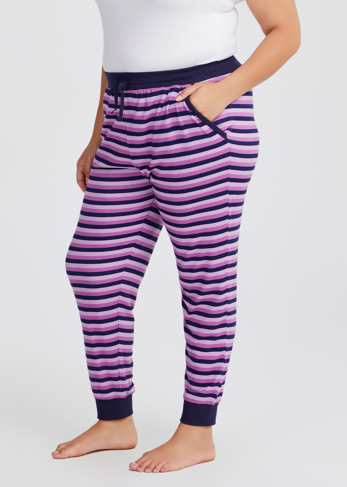 Elevate your sleepwear with the Lounge Stripe Cuff Pant from Taking Shape, the ultimate companion for those cosy brunch dates or lazy weekends at home. Crafted from a smooth and stretchy fabric, these chic plus size pants wrap you in comfort that lasts all day, while the elasticated waistband and drawcords provide the perfect fit because you deserve to feel good while looking fabulous. The gathered cuffs and playful striped design add a stylish twist, and you'll love the practicality of side pockets for stashing essentials.