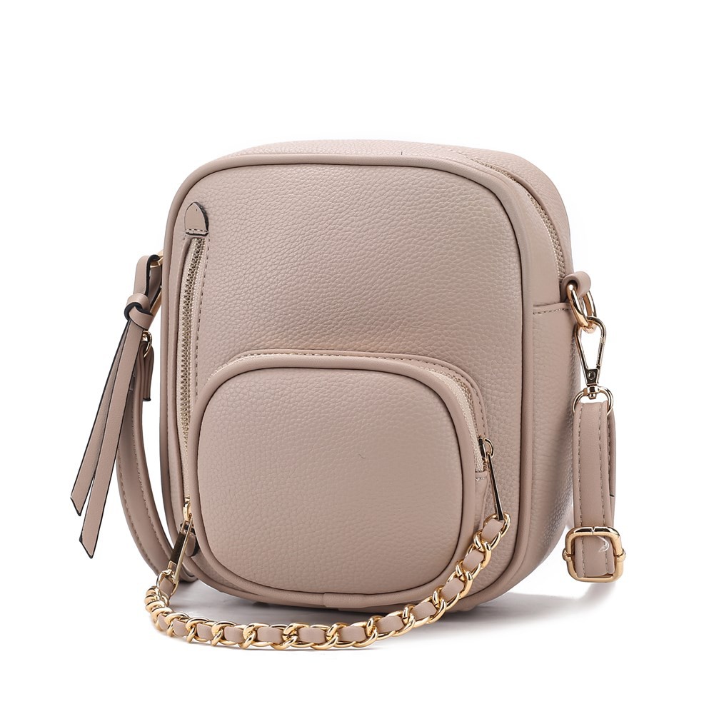 The Mia K Winona Crossbody Bag is a stylish and versatile medium-sized bag crafted from high-quality pebbled vegan leather. It features two spacious front zipper pockets with sophisticated braided chain detailing perfect for quick access to essentials. The adjustable and detachable strap allows for both shoulder and crossbody wear. Inside it offers organized storage with a wall zippered pocket and slip pocket. Designed with a flat base and protective feet for stability the Winona Crossbody Bag is a chic accessory that complements any outfit for various occasions.