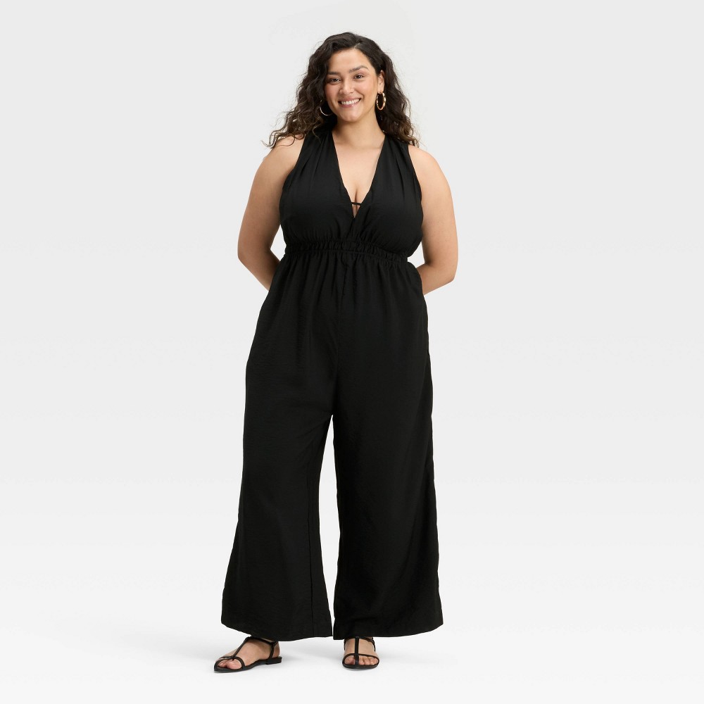 Add a subtle hint of glam to your casual wardrobe with this Jumpsuit from A New Day™. Made of rayon-nylon blend fabric, this sleeveless jumpsuit is a great fit for casual outings. It features a V-neckline and a back keyhole button for easy wear, and boasts a cinched waist for a snug fit. Plus, the full-length jumpsuit also comes with a side pocket to stash on-the-go essentials. A New Day™: Style that goes wherever you do.