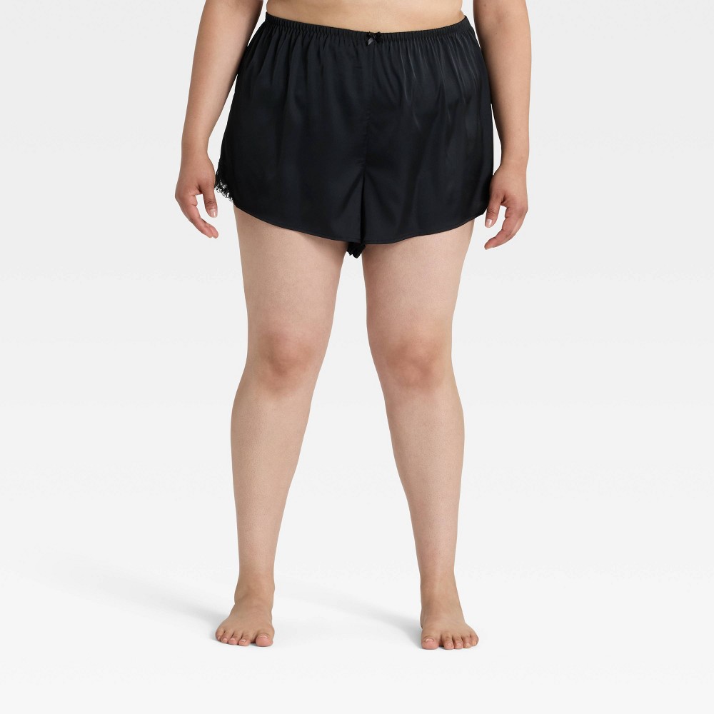 Women's Lace Trim Satin Pajama Shorts - Auden™ Bla...