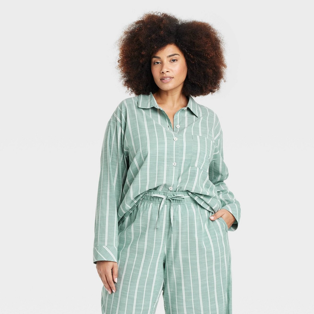 Sleep in luxurious comfort night after night with this Striped Long-Sleeve Pajama Shirt from Auden™. Boasting a cool striped pattern, the long-sleeve pajama shirt features a collared neckline, a button-down front, chest patch pocket and banded cuffs for classic flair. Made from cotton-blend poplin fabric in a regular-fit for comfortable wear, the pajama shirt is great for sleeping or curling up on the couch to watch a movie. Auden™: Comfort true to every shape & hue.