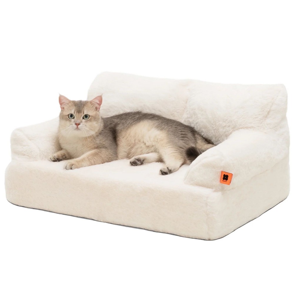 Treat your furry companion to the luxury they deserve with the Mewoofun Plush Pet Sofa Bed. This charming pet couch replicates real furniture while providing exceptional comfort for small to medium-sized cats and dogs. Crafted from ultra-soft plush material, it offers year-round warmth and coziness that pets absolutely love. The sturdy construction maintains its shape through daily use, and the elegant white color blends beautifully with your home decor. Measuring 28x13x20 inches, it's spacious enough for pets to curl up or stretch out comfortably. Perfect for napping, lounging, or giving your pet their own special spot, this sofa bed creates a dedicated relaxation space that reduces anxiety and promotes better rest. Easy to clean and maintain, it's designed to withstand the wear and tear of pet life while keeping its luxurious appearance. Transform your pet's relaxation routine with this delightful addition to your pet-loving home, available now at Target for immediate shipping. Give your beloved pet the comfort and style they deserve with this premium pet sofa that looks as good as it feels.
