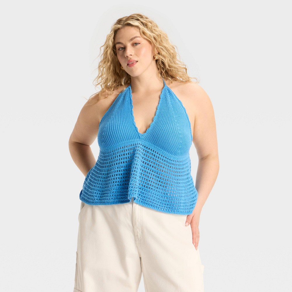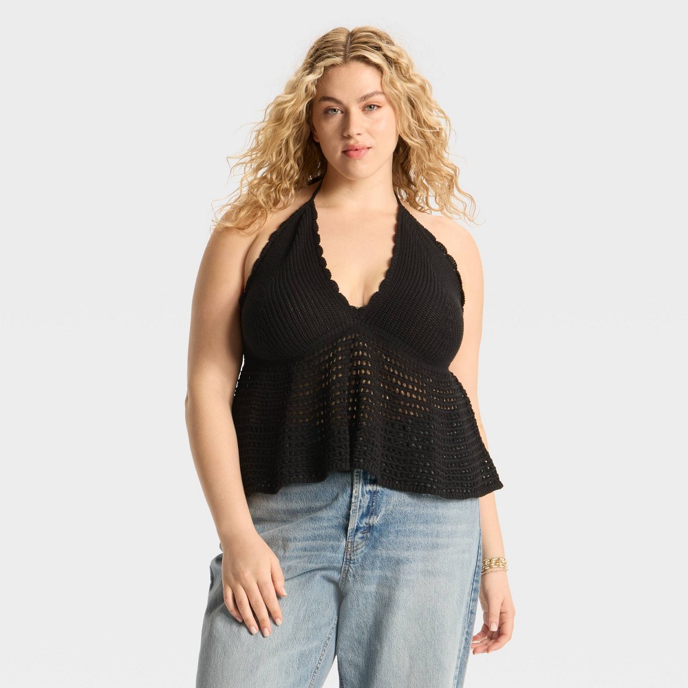 The knit peplum halter sweater from Wild Fable™ features a 100% cotton openwork knit construction and a sleeveless design. The deep V-neckline is adorned with a scalloped trim and the halter-neck design with back tie offers a secure fit. If you're not satisfied with any Target Owned Brand item, return it within one year with a receipt for an exchange or a refund. Wild Fable™: A look for every story.
