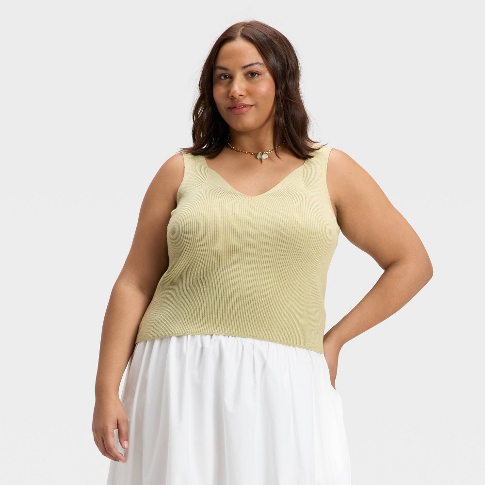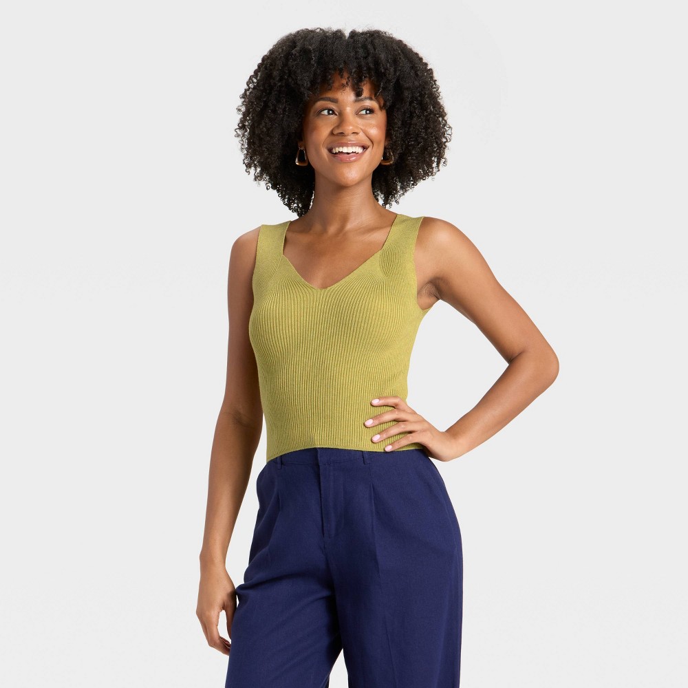 Women's V-Neck Sweater Tank - A New Day™ Olive XL