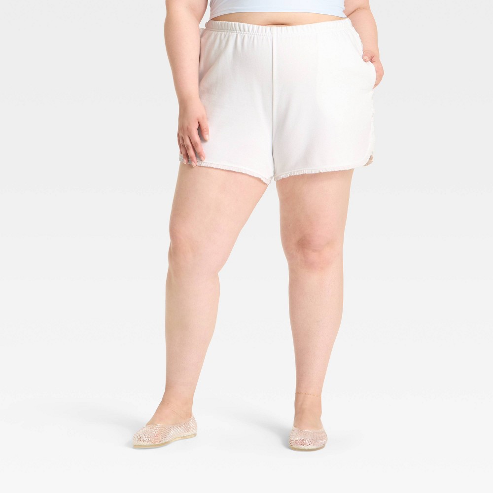 French terry shorts from Wild Fable™ in a solid hue with lace-trimmed dolphin hems. Tailored in a mid-rise, regular-fit silhouette with handy side pockets. Crafted from a heavyweight cotton-recycled polyester blend for comfortable wear. Full elastic waistband completes the look with easy pull-on convenience. If you’re not satisfied with any Target Owned Brand item, return it within one year with a receipt for an exchange or a refund. Wild Fable™: A look for every story.