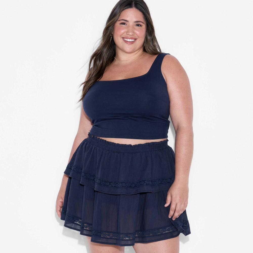 Tiered A-line skort from Wild Fable™ with lace trim accents. Tailored in a mid-rise, mini-length silhouette. Made from lightweight cotton fabric for breathable all-day wear. Full elastic waistband completes the look and provides a secure, stay-put fit. If you're not satisfied with any Target Owned Brand item, return it within one year with a receipt for an exchange or a refund. Wild Fable™: A look for every story.