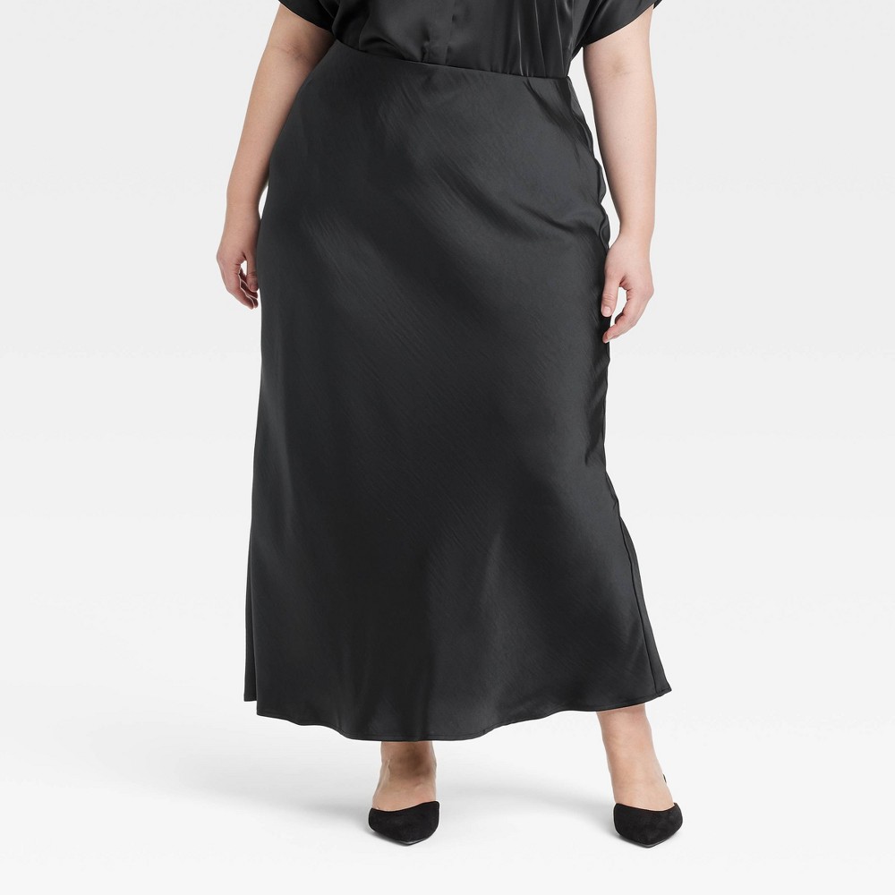 Women's Midi A-Line Skirt - A New Day™ Black 2X: S...
