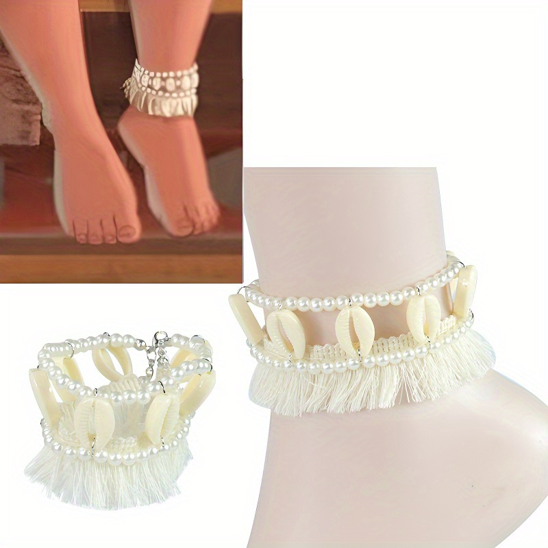 TEMU 1pc Elegant Bohemian Bead Ankle Chain, Inlaid...