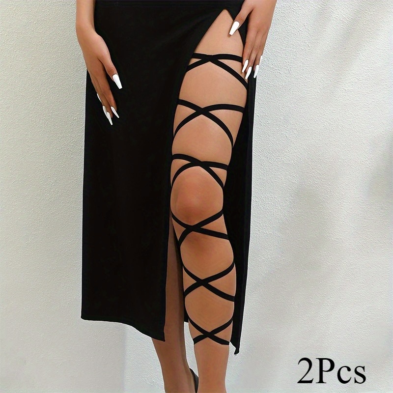 TEMU 2pcs Punk Arm Wrap Elastic Straps Sexy-leg Wr...
