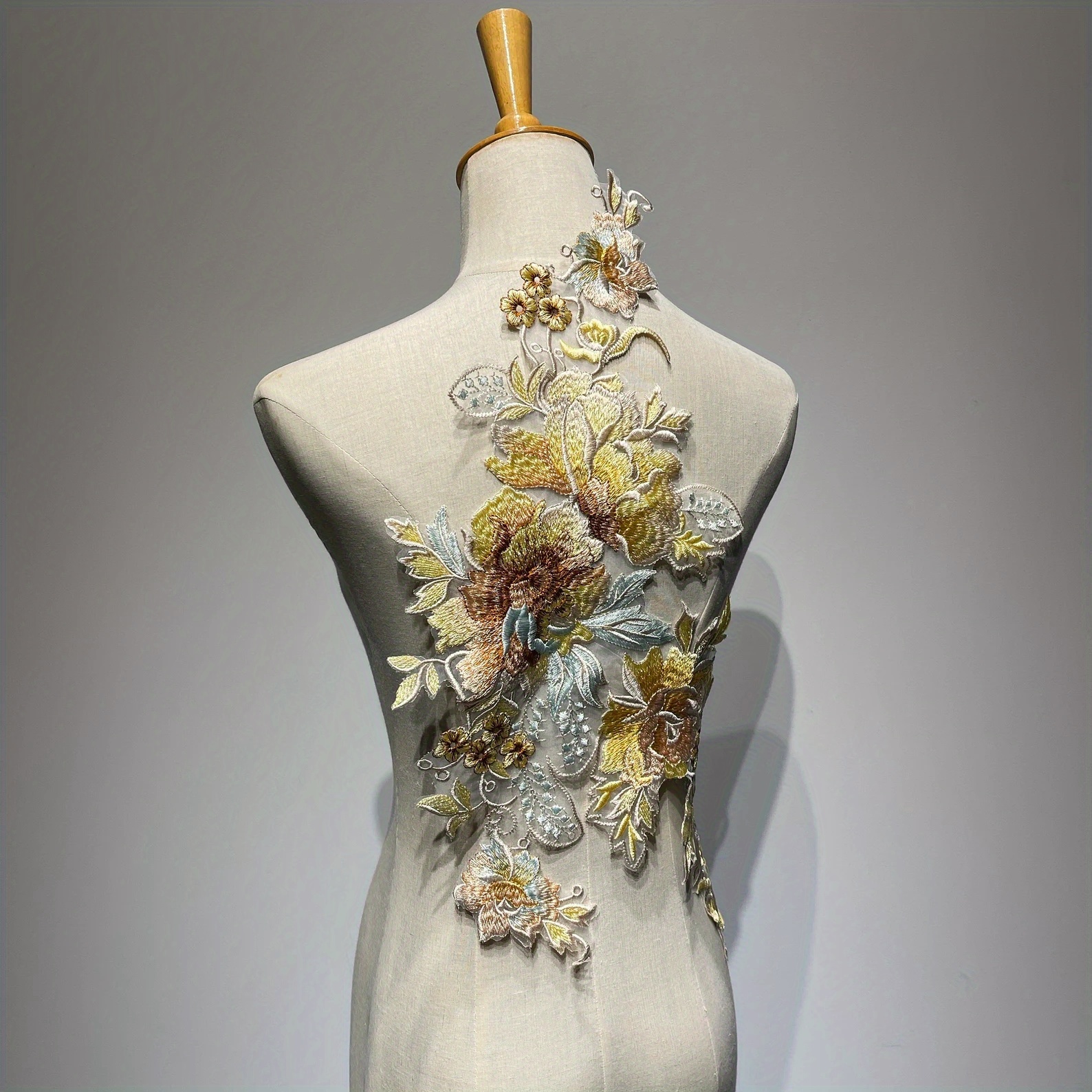 TEMU 1pc Luxurious Retro Yellow Flower Embroidery ...