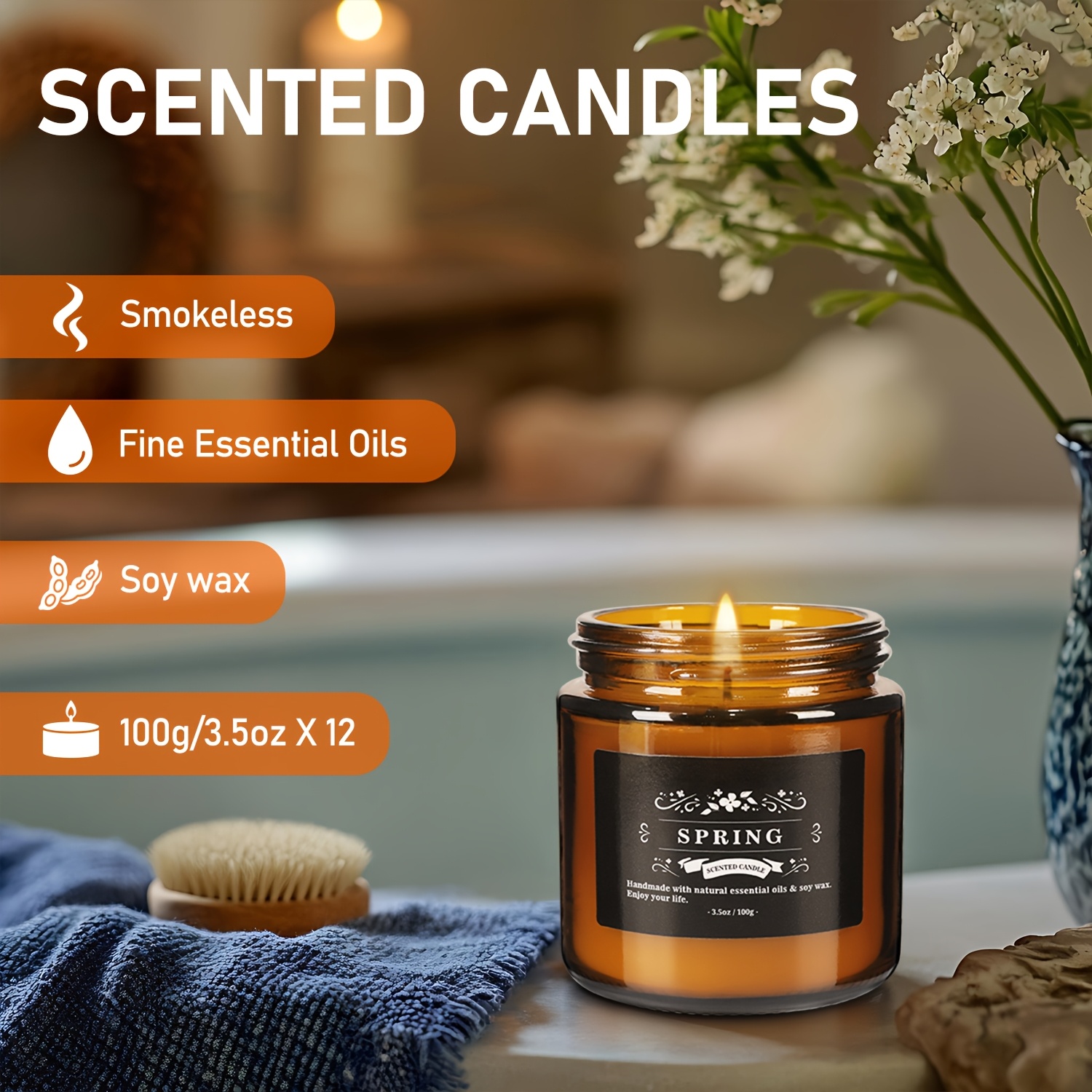 TEMU 12pcs Of Scented Candles, Including Rose, Lil...