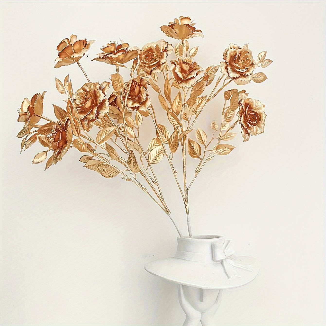 TEMU 2pcs Golden Artificial Roses - Real Touch Flo...