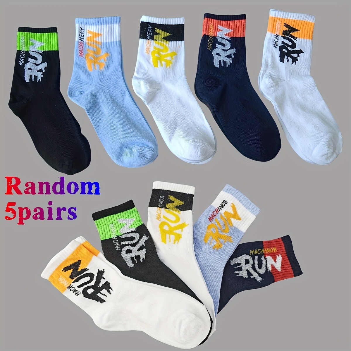 TEMU 5pair Letters Pattern Men's Mid-calf Crew Soc...