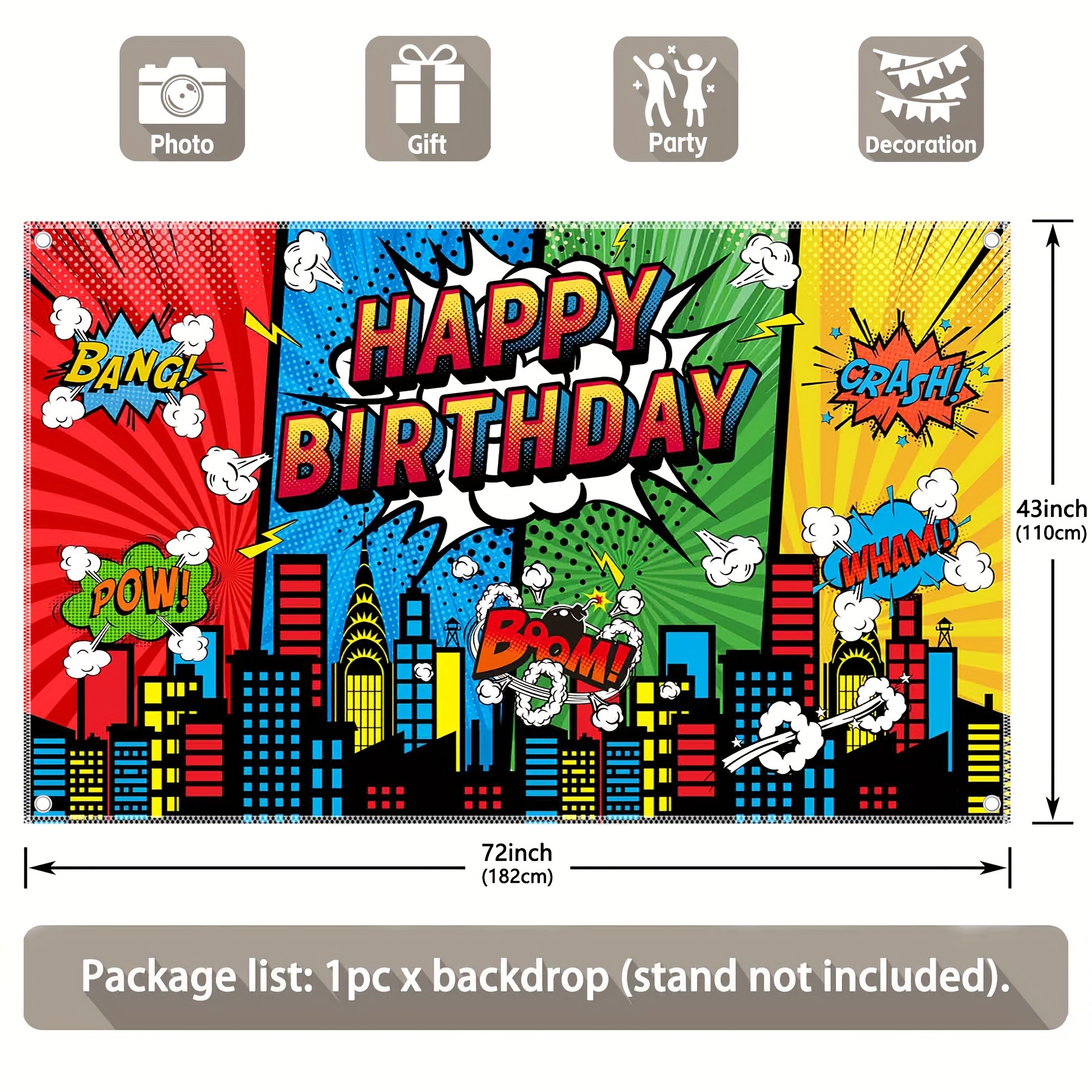 TEMU [2d Flat]1pcs 72x43inch, Superhero Theme Birt...