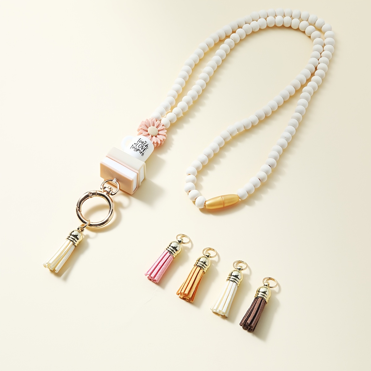 TEMU 1pc Of Wooden Bead And Silicone Bead Lanyard,...