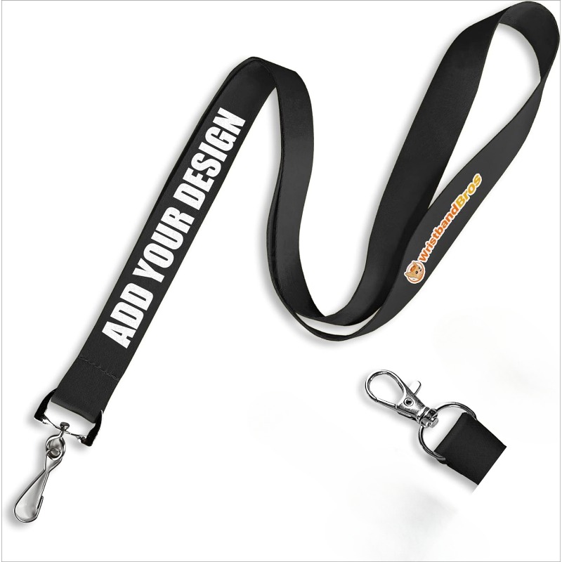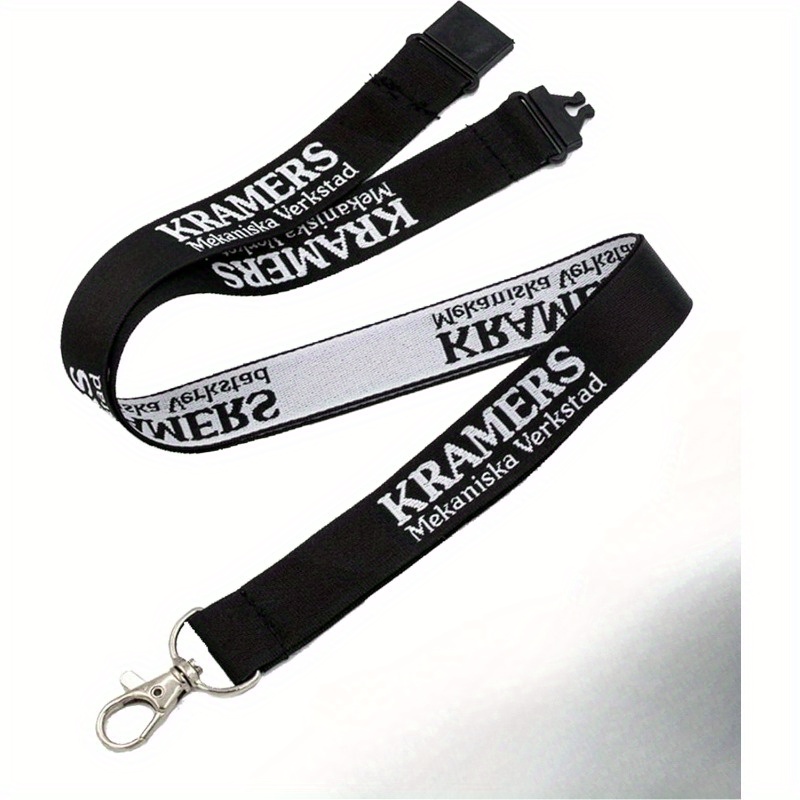 TEMU Customizable Black Polyester Lanyard With Whi...