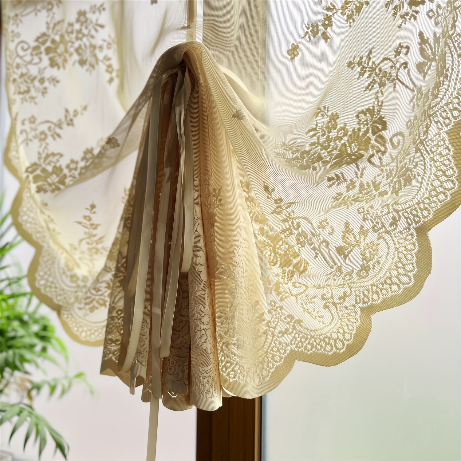 TEMU 1pc Gxi Vintage Floral Lace Sheer Curtain, Ko...