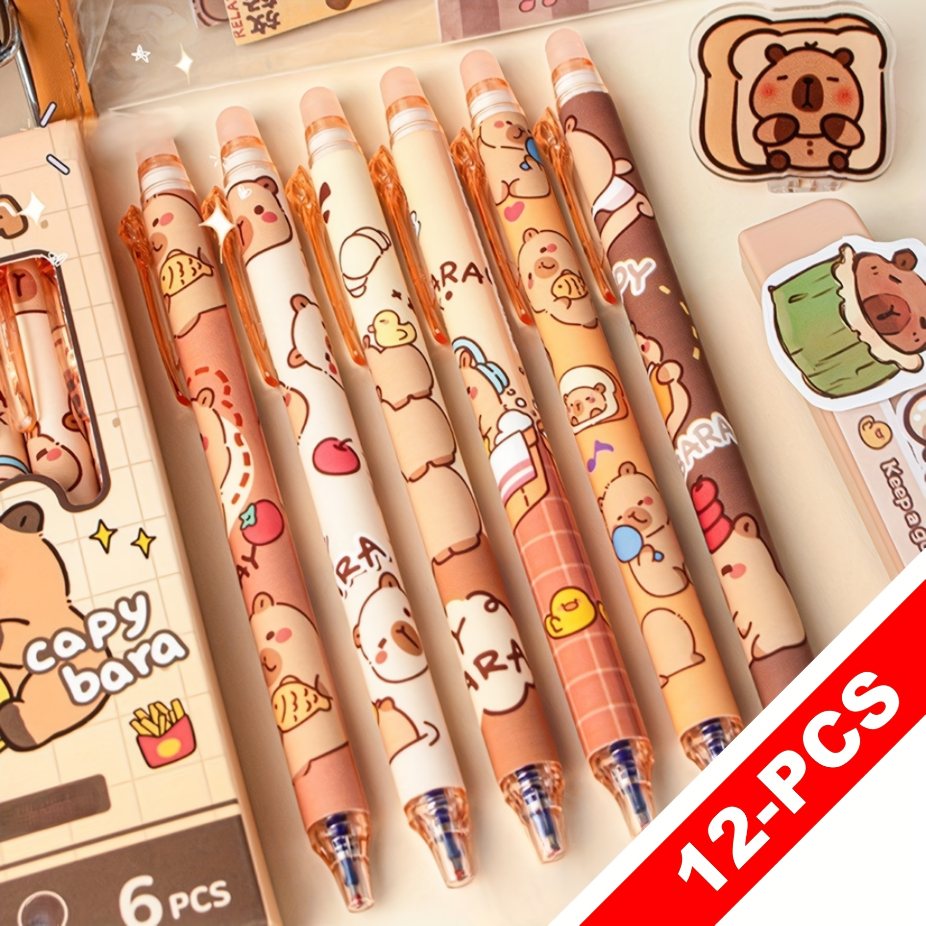 TEMU 12/6pcs Set Of Cute Capybara Erasable Neutral...