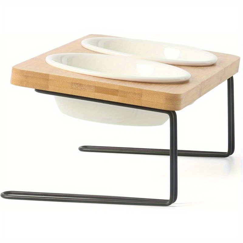 TEMU Double Bamboo Cat Bowl With Vertical Food And...