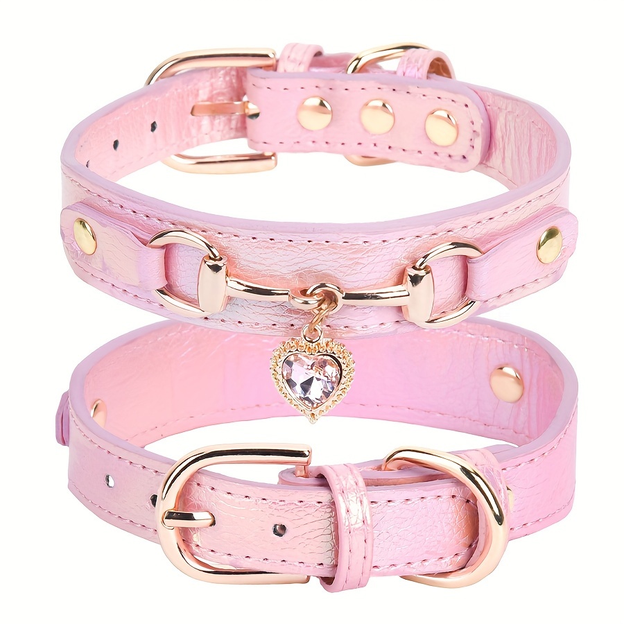 TEMU Cp567 Heart Rhinestone Pet Collar - Durable L...