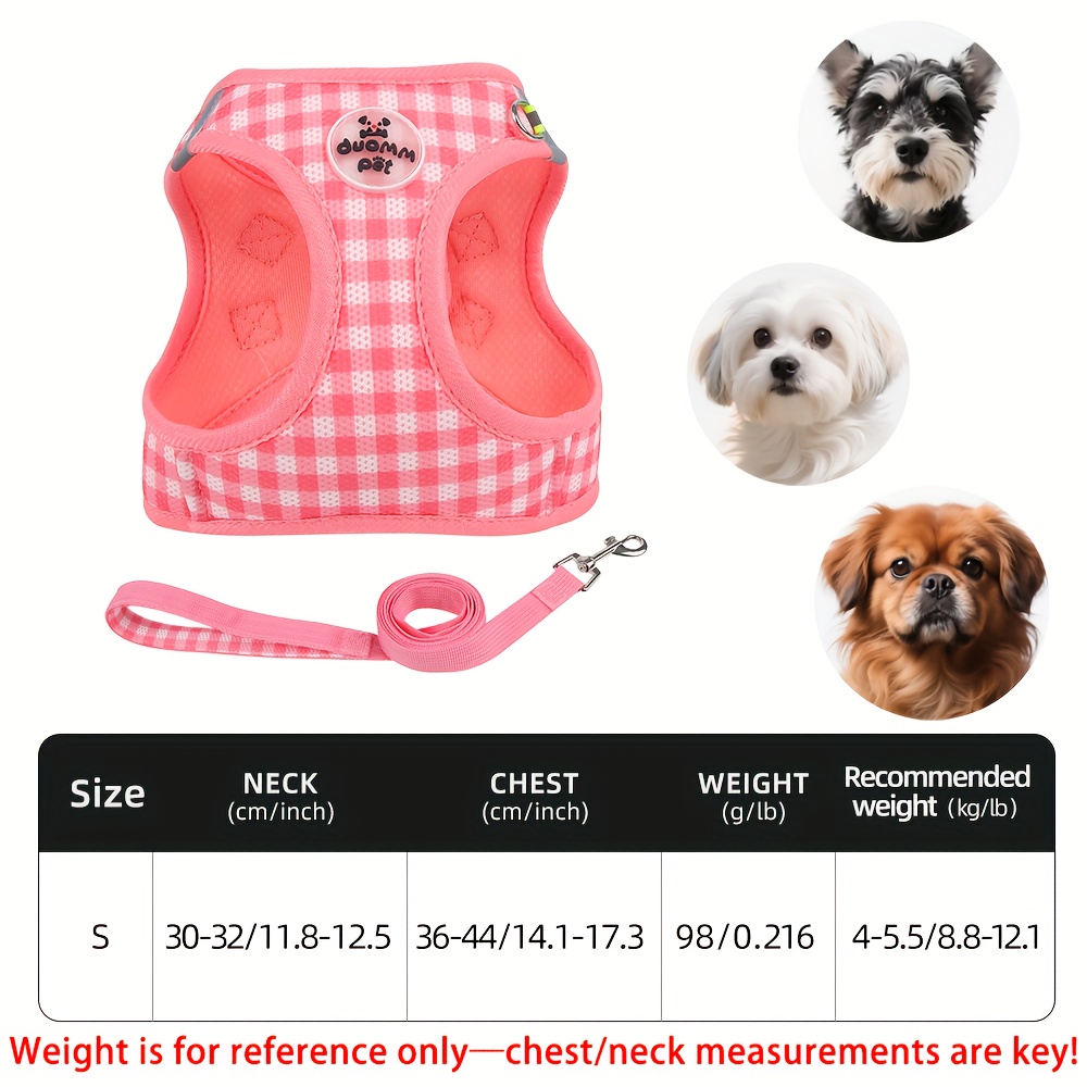 TEMU 1pc Reflective Plaid Dog Harness With Leash, ...