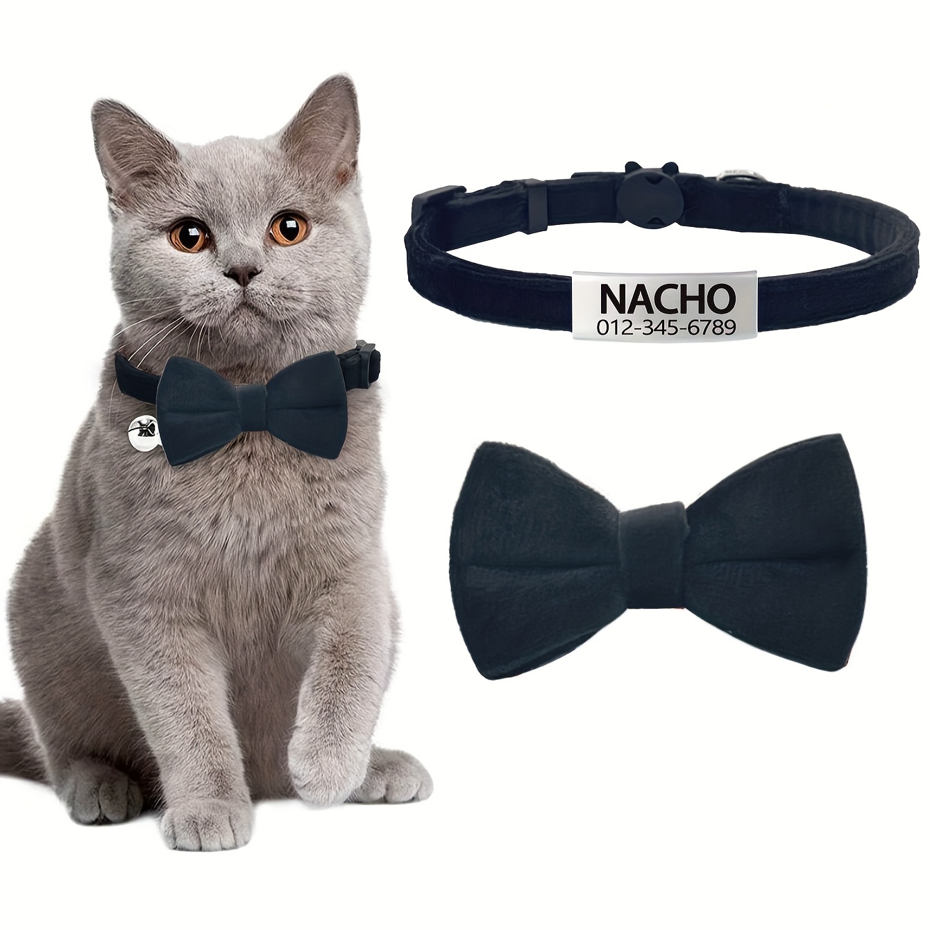 TEMU Customizable Velvet Cat Collar With Detachabl...