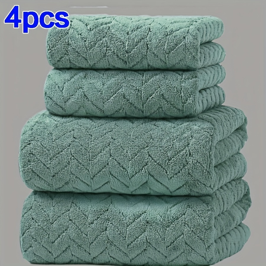 TEMU 4-pack Plush Bath Towels, Soft & Quick-dry, A...