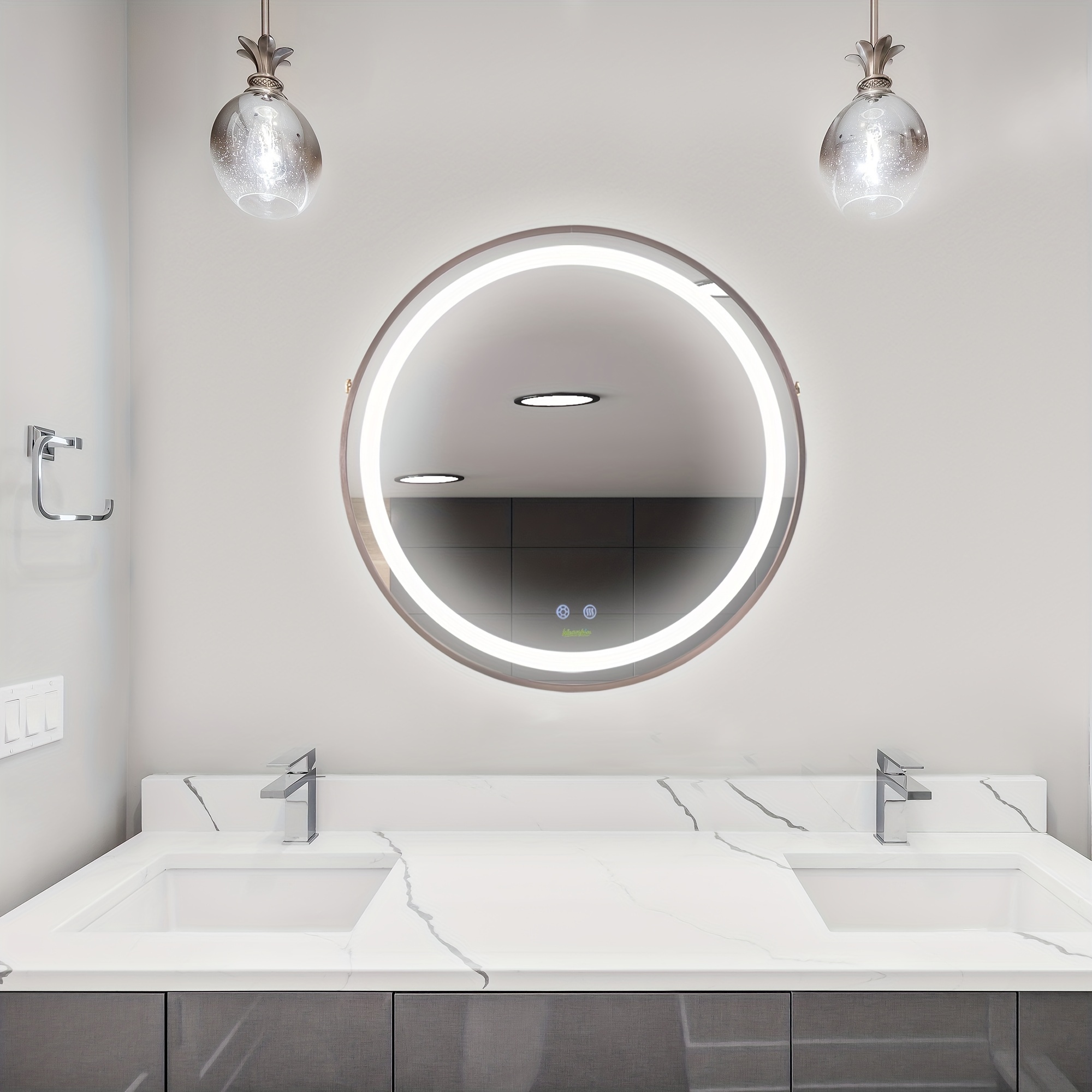 TEMU 24'' Round Led Bathroom Mirror, Dimmable Anti...