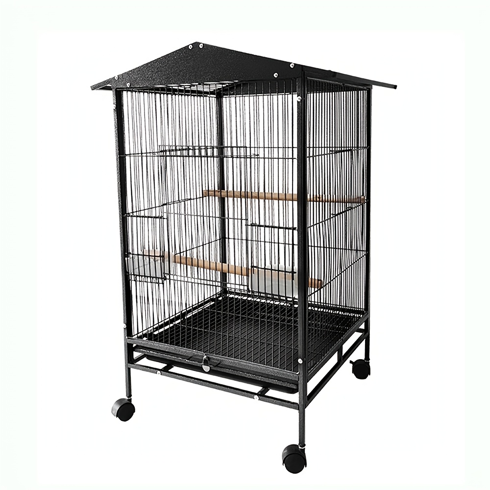 TEMU With 4 Castors + Roof-shaped Wire Bird Cage, ...