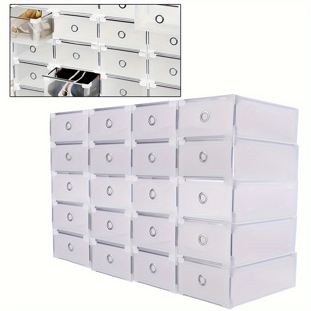 TEMU 20x Shoe Storage Box Transparent Plastic Stac...