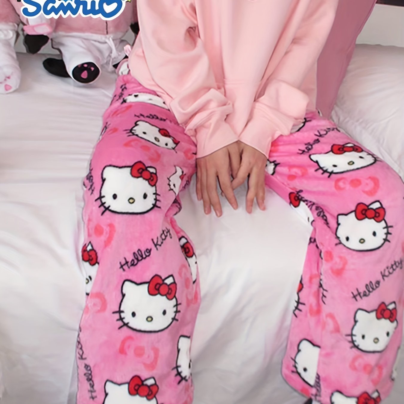 TEMU For Hello Kitty Flannel Pajama Pants - High W...