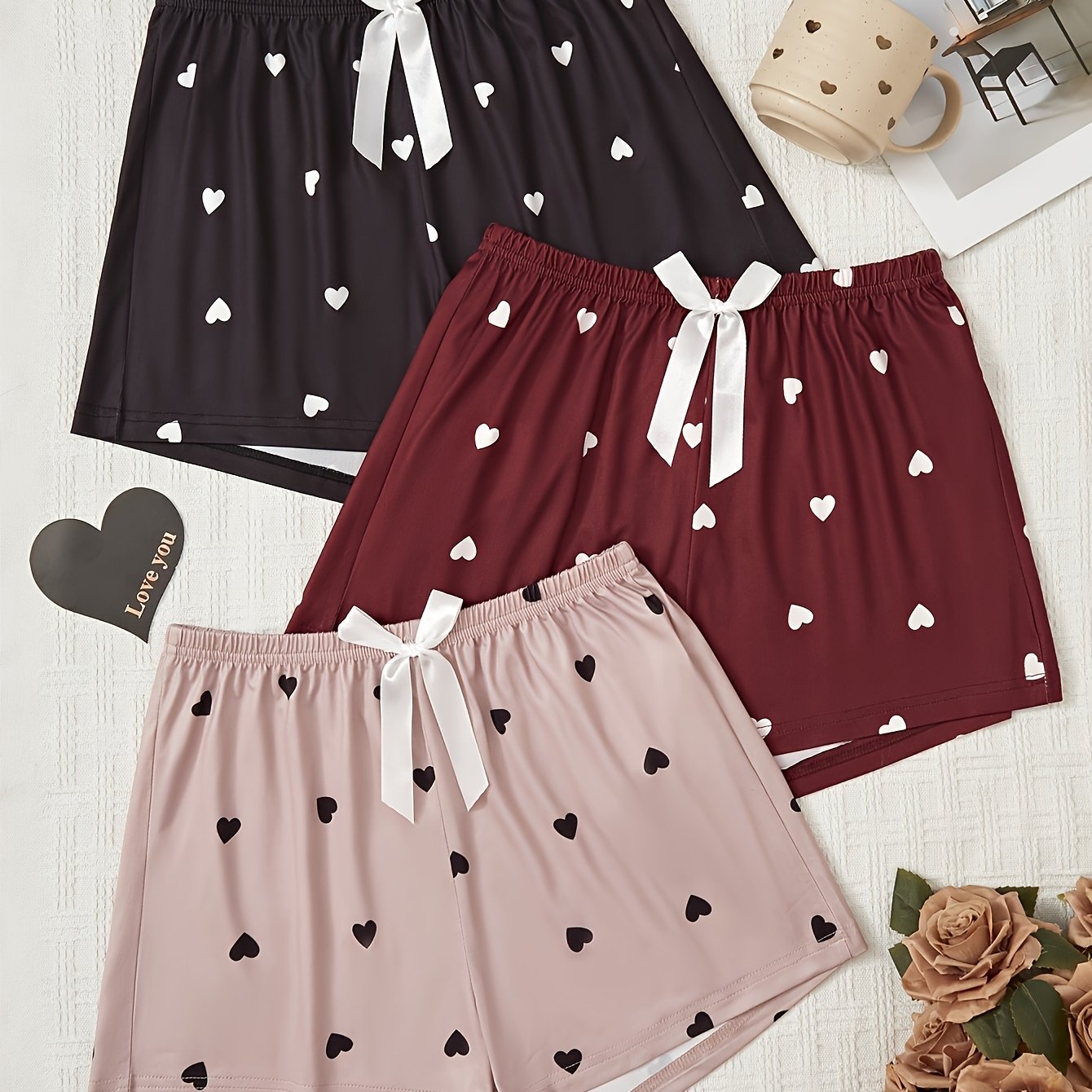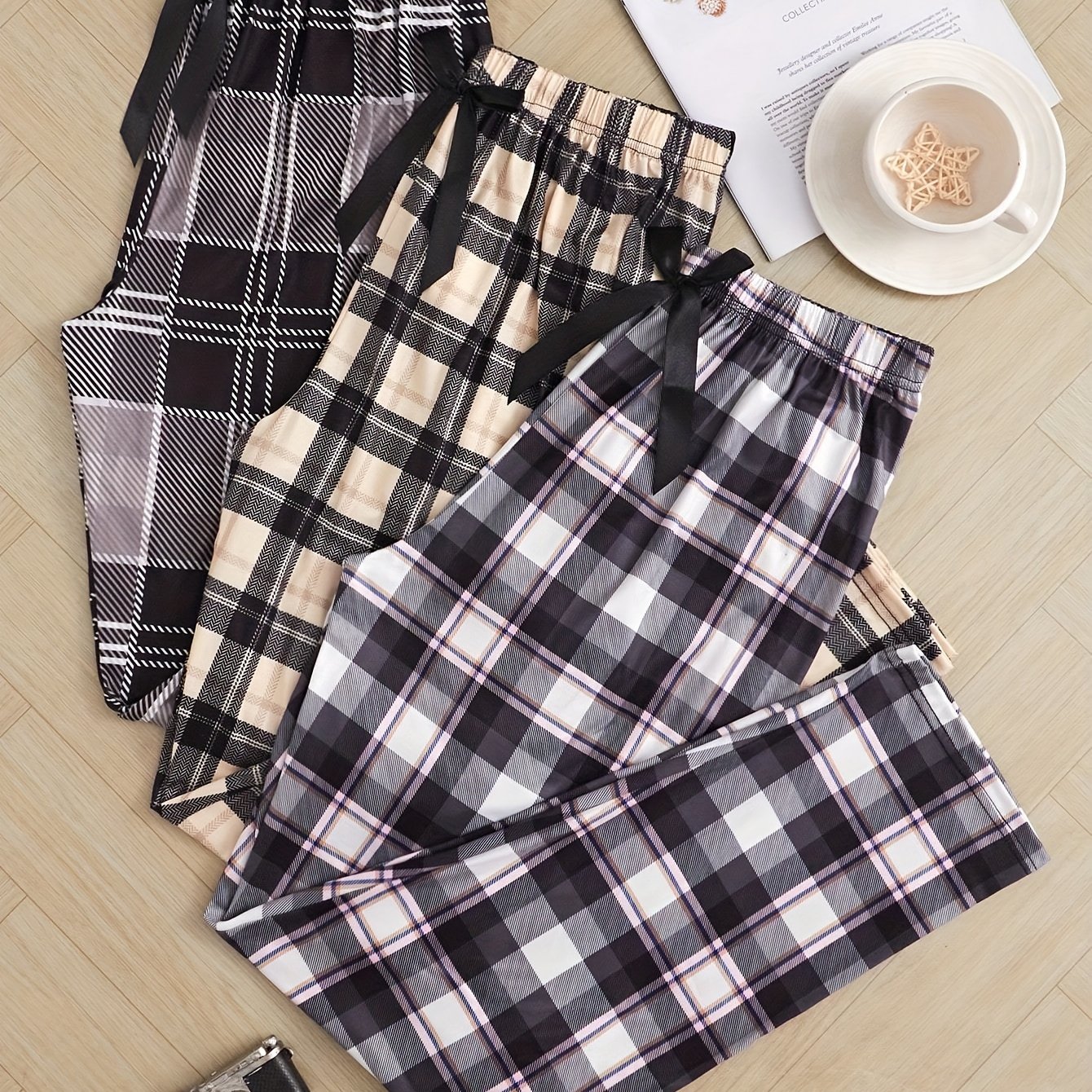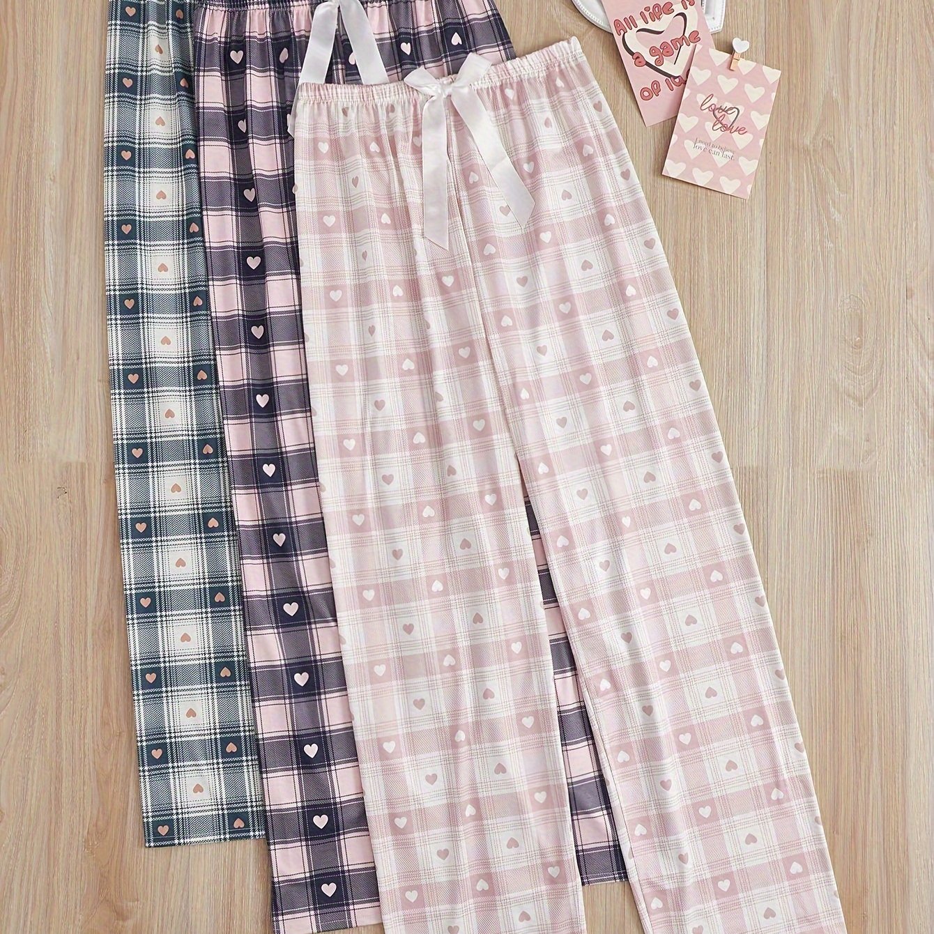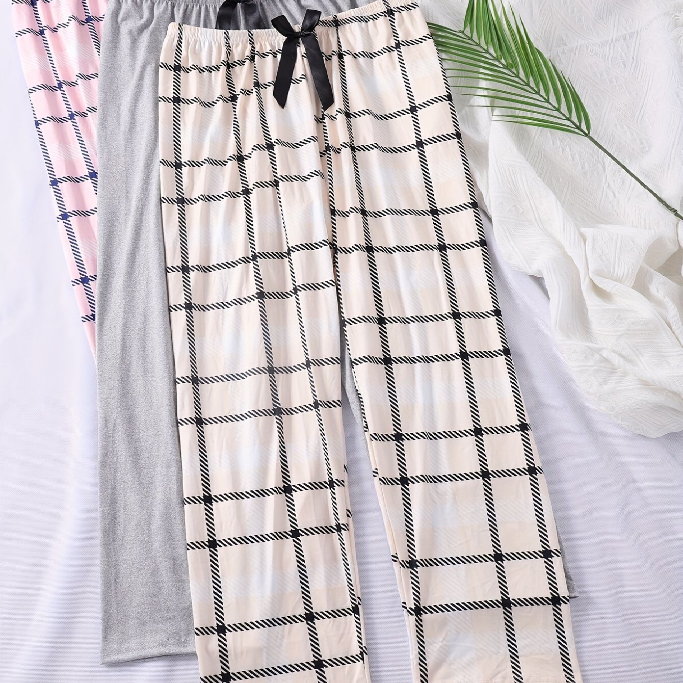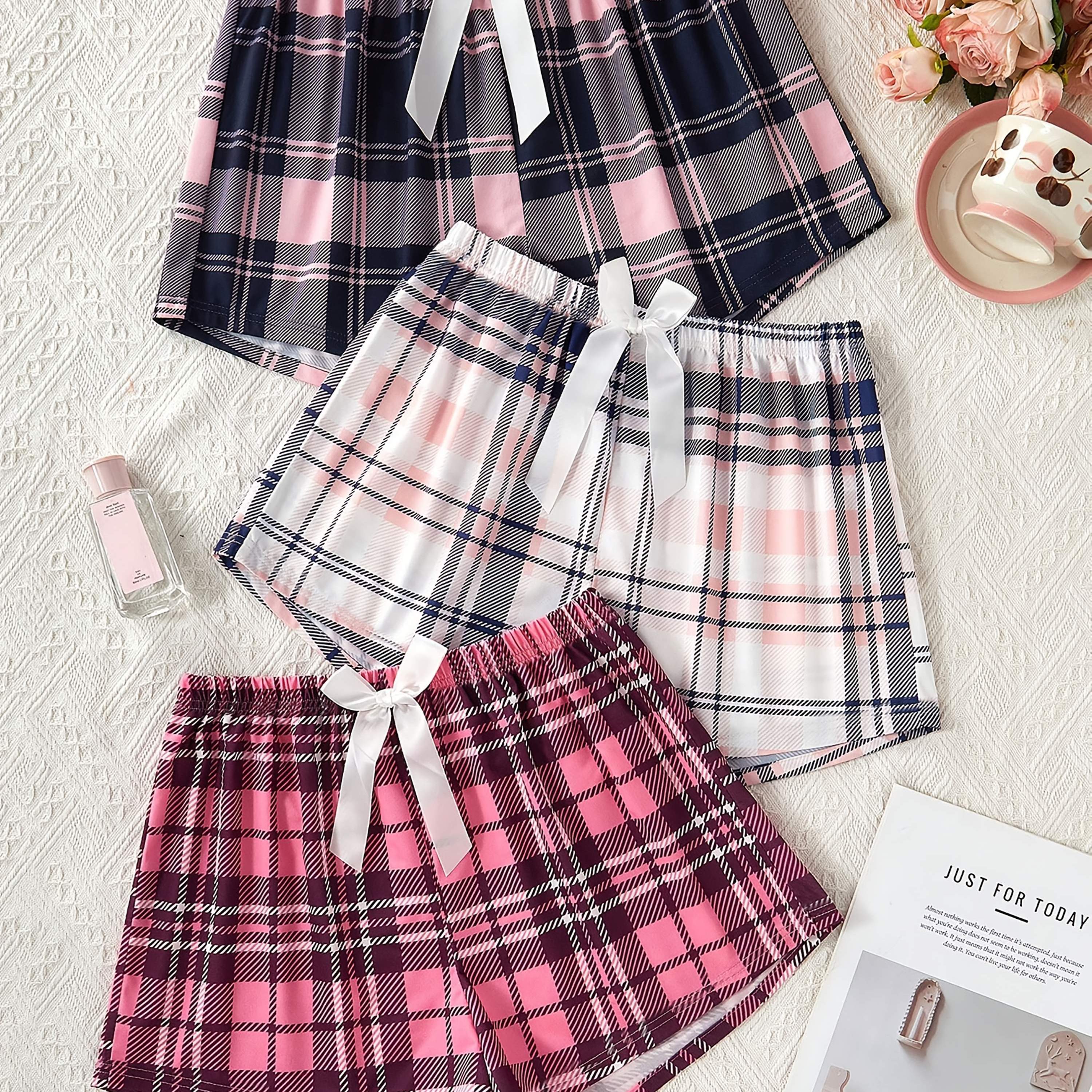 TEMU 3-pack Women's Pajama Pants With Bow Tie, Cas...