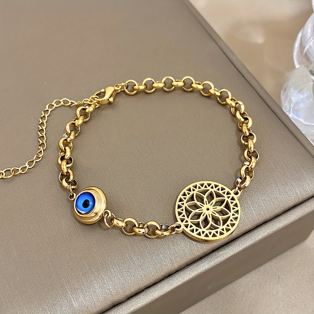 TEMU Chic Golden-tone Stainless Steel Bracelet Wit...