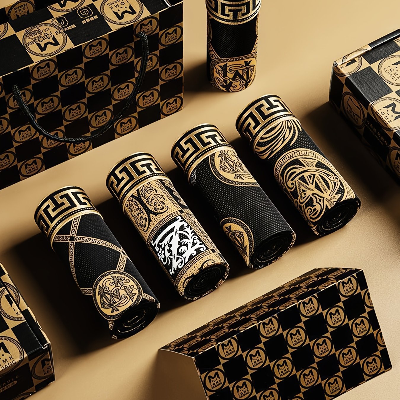 TEMU 5pcs 's Black And Golden Flat Front Fashion K...
