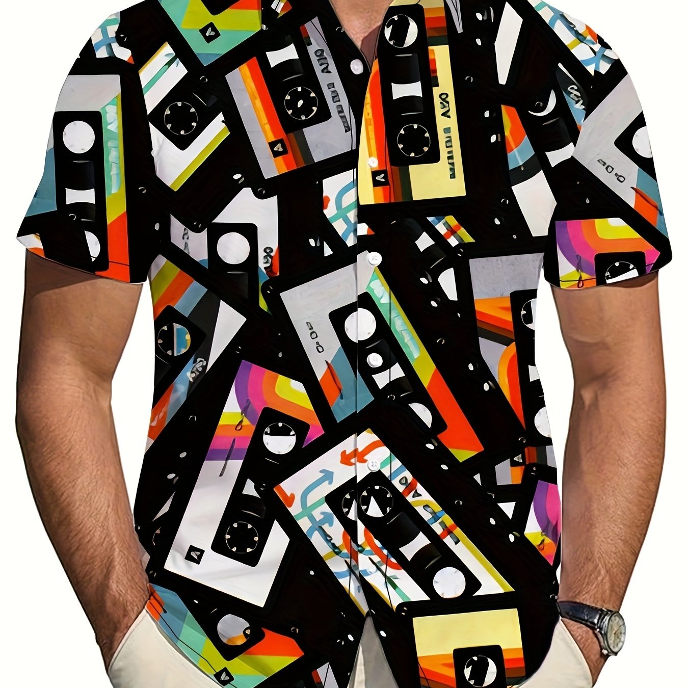 TEMU Herren Retro-Kassettenband-Druck Kurzarmhemd ...