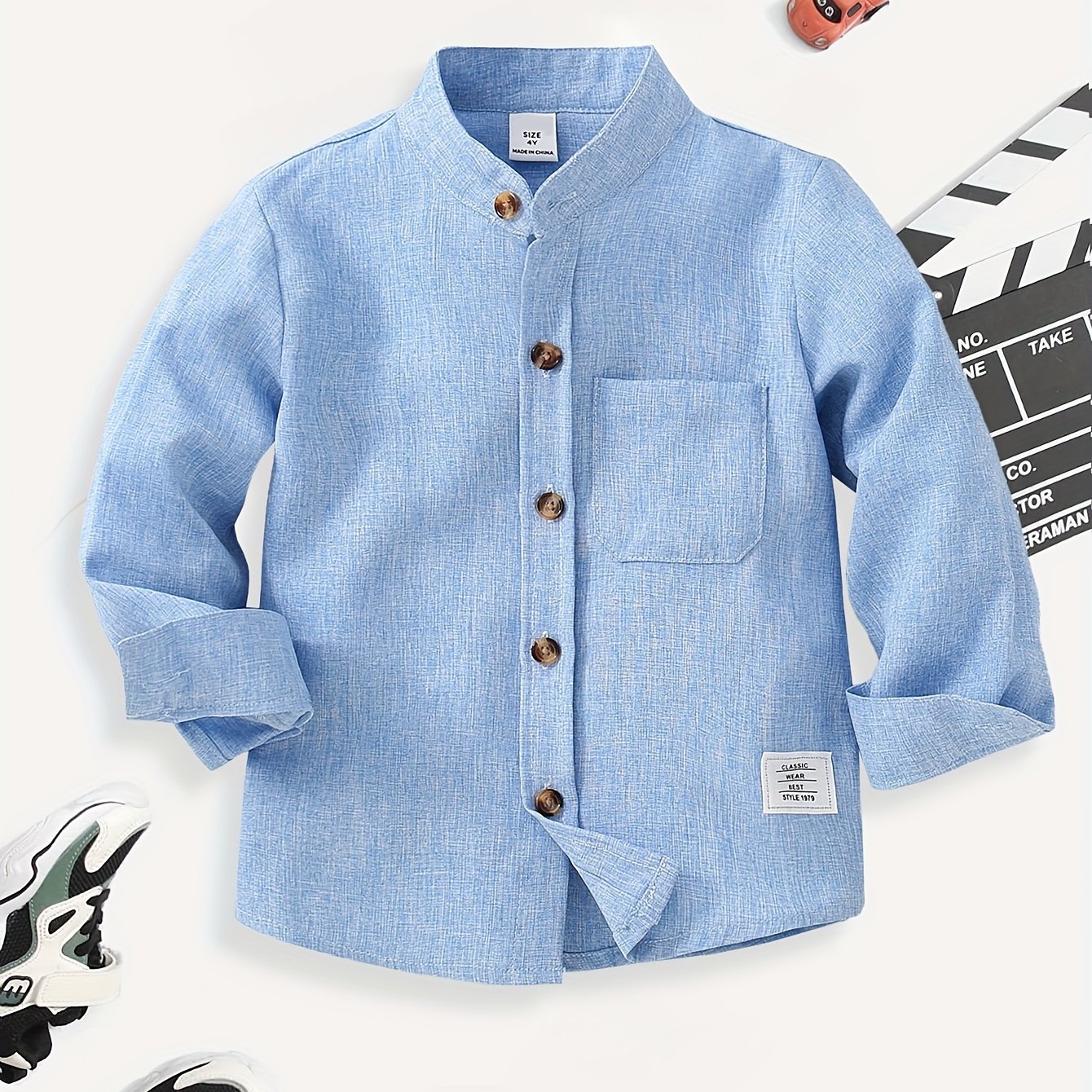 TEMU Boys' Classic Long Sleeve Shirt - Casual Butt...