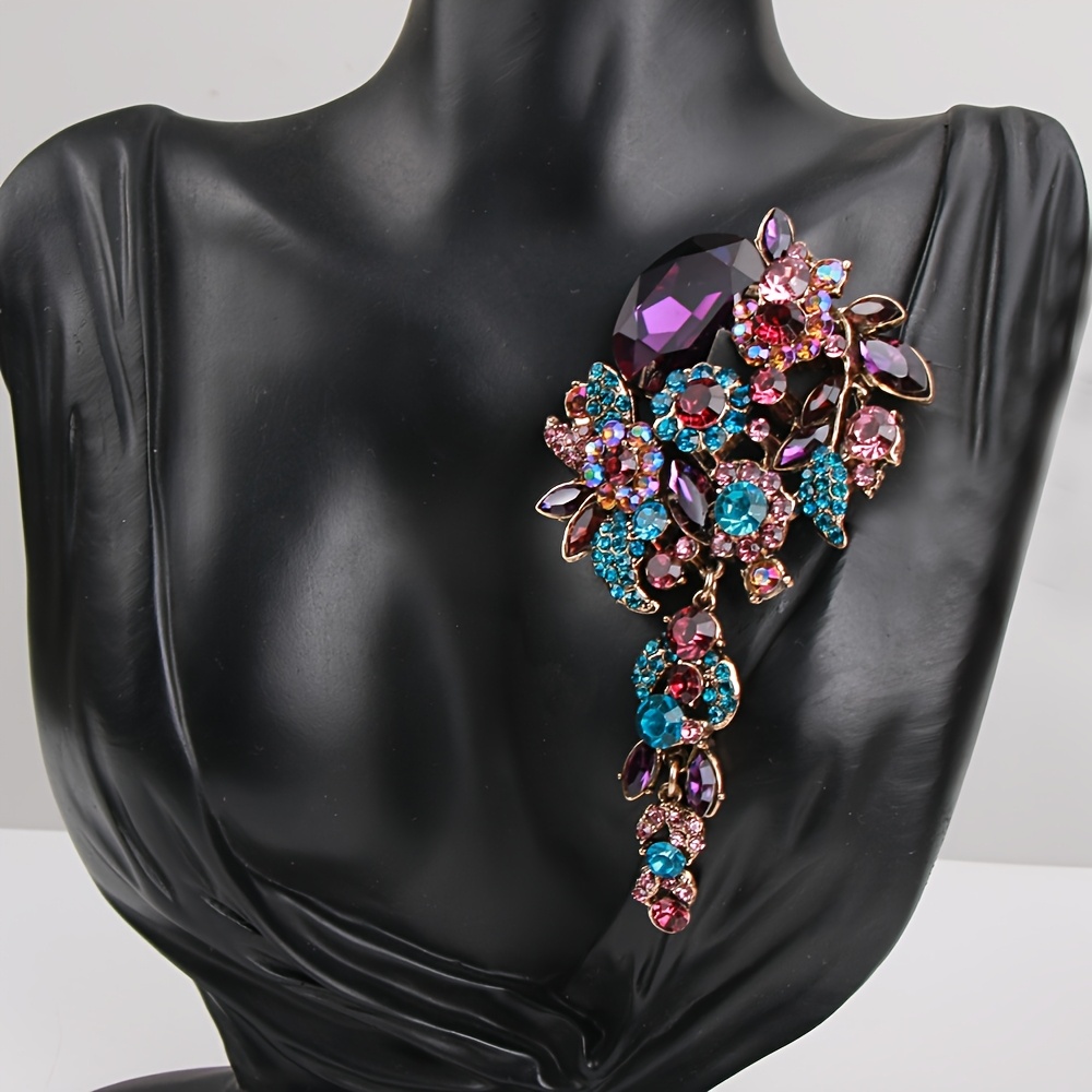 TEMU Vintage Rhinestone Brooch Pin, Elegant Irregu...