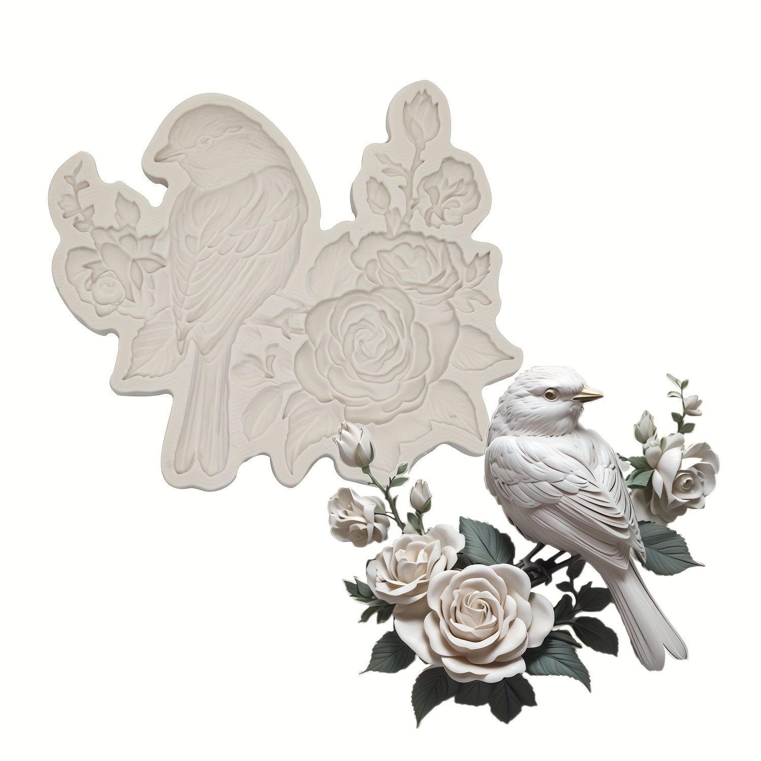 TEMU 1pc, 3d Silicone Cake Mold With Bird & Roses ...