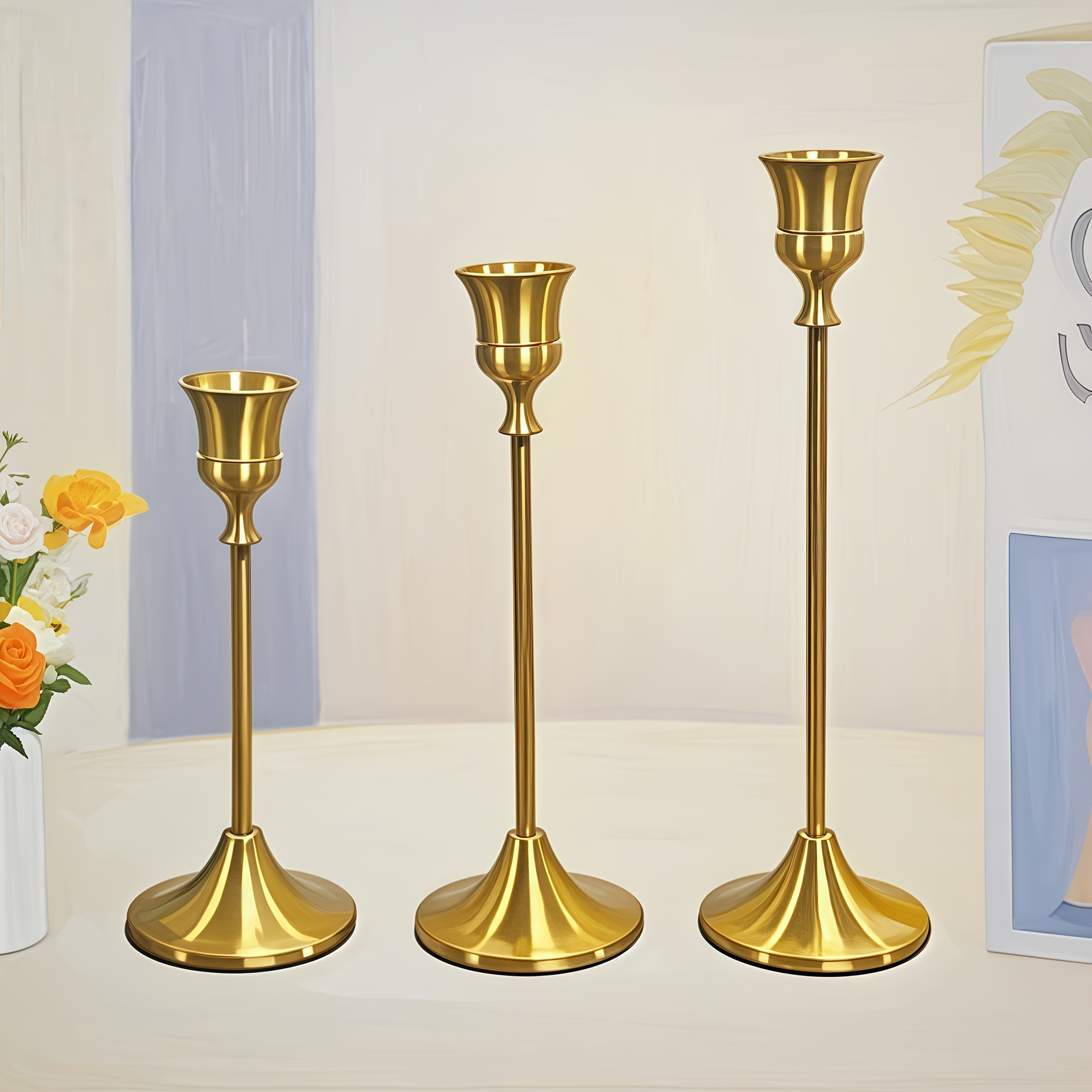 TEMU 3pcs Elegant Golden Metal Candlestick Holders...