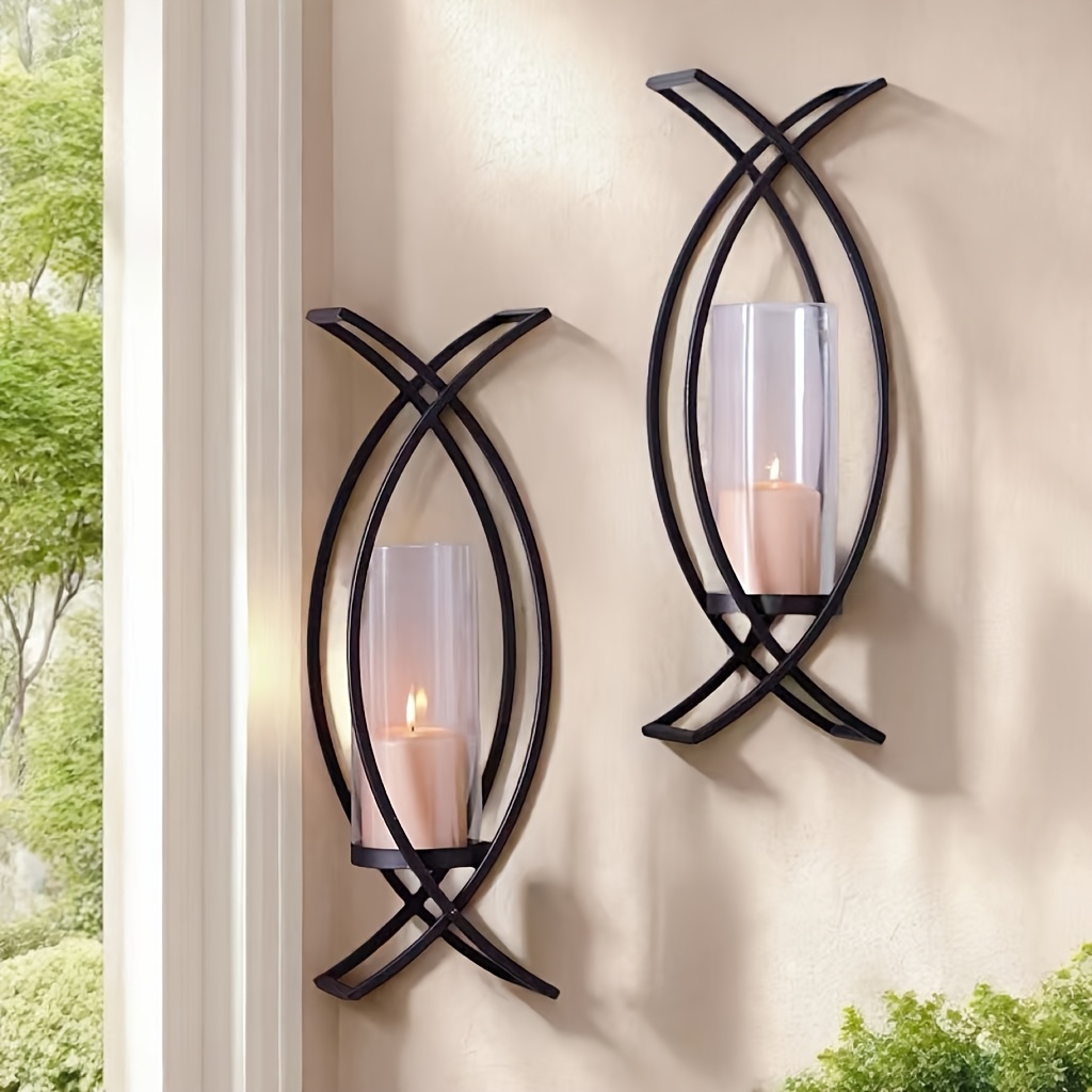 TEMU Set Of 2 Wall Candle Holder With Glass Shade