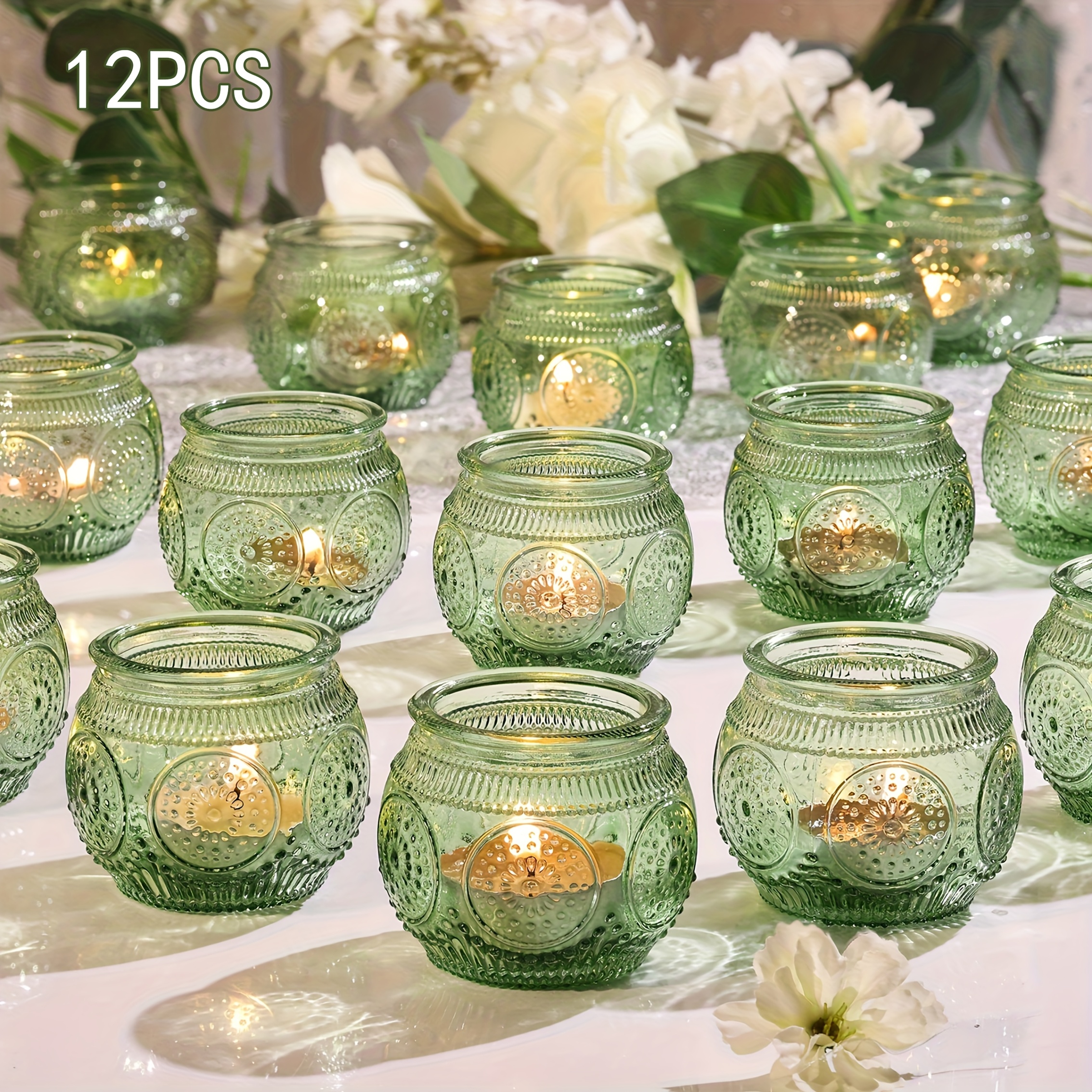 TEMU 6/12 Stück "Vintage Grüne Glas-Kerzenhalter –...
