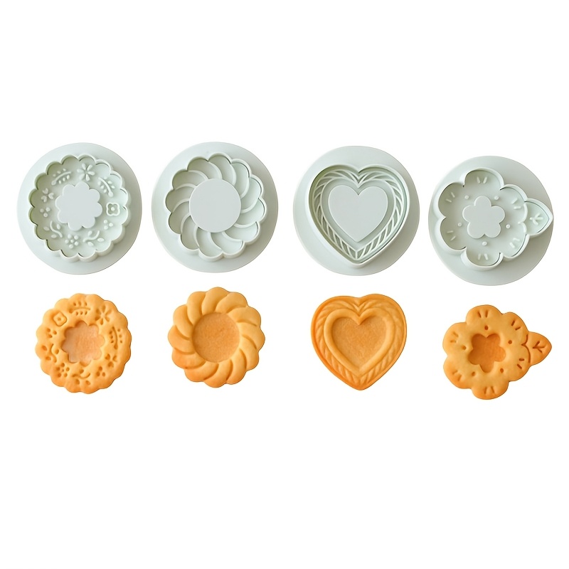 TEMU 4pcs/set 3d Plastic Cookie Molds, Heart & Flo...