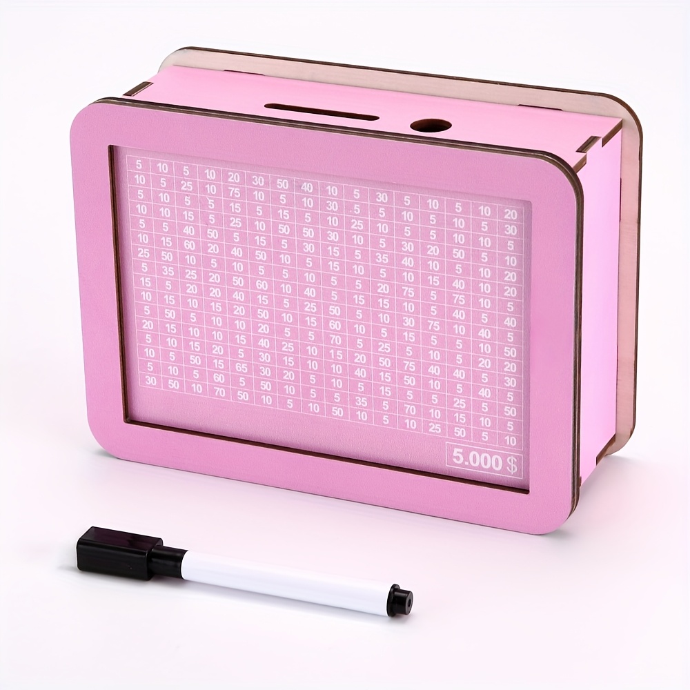 TEMU 1pc Dollar Sign Penny Bank Diy Pink Wooden Mo...