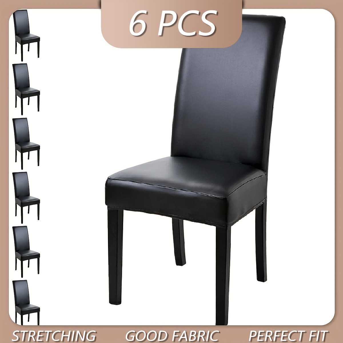 TEMU 4/6 Stück Einfarbige Elastische PU-Stuhlbezüg...