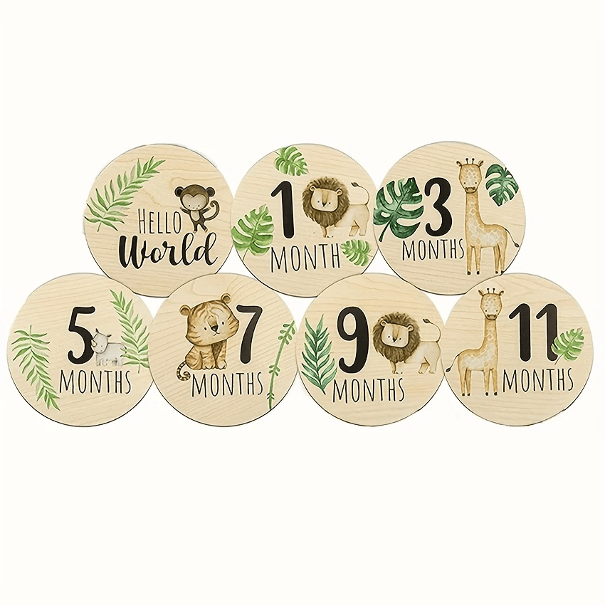 TEMU Set Of 7 Wooden Cards For Monthly Milestones,...
