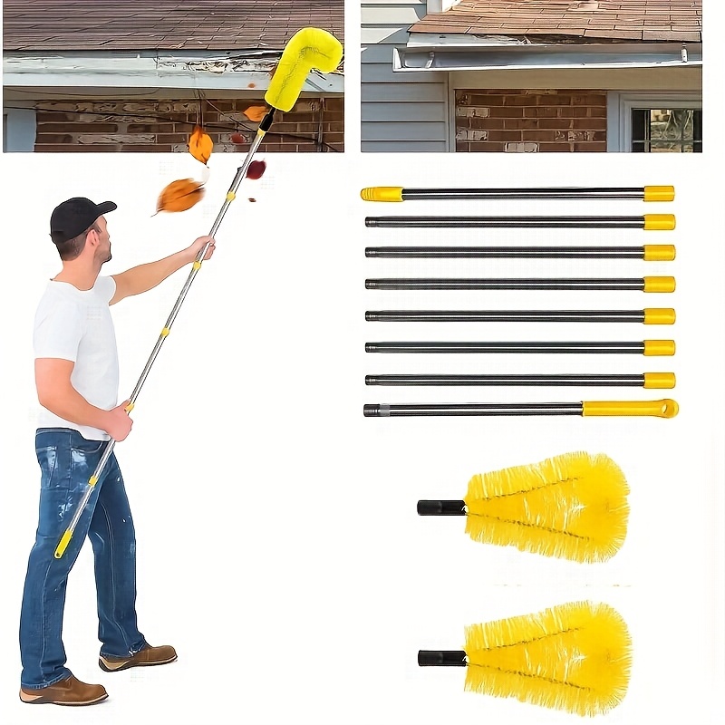 TEMU Extendable Gutter Cleaning Tool With 2 Brushe...